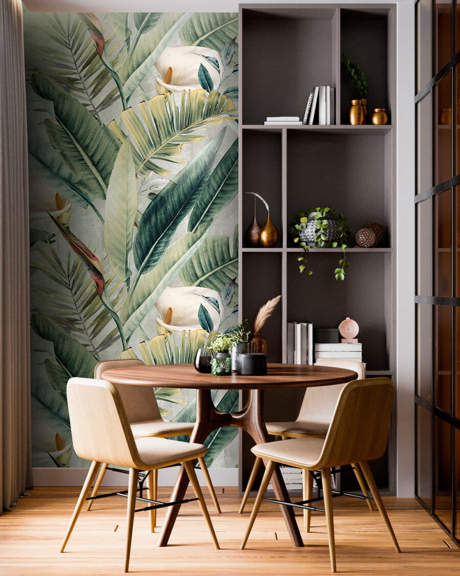 Transform any space with this delightful wall mural featuring a lush pattern of green leaves and charming flowers. It’s like bringing a piece of the outdoors inside—minus the bugs, thankfully! Imagine sipping coffee in a cozy nook, surrounded by this vibrant jungle vibe. Each leaf practically whispers tales of breezy afternoons and sunny days. It’s not just decor; it’s an instant mood booster! Perfect for a living room, bedroom, or even a fun office space. Who wouldn’t want to feel like they’re on a tropical getaway every day?