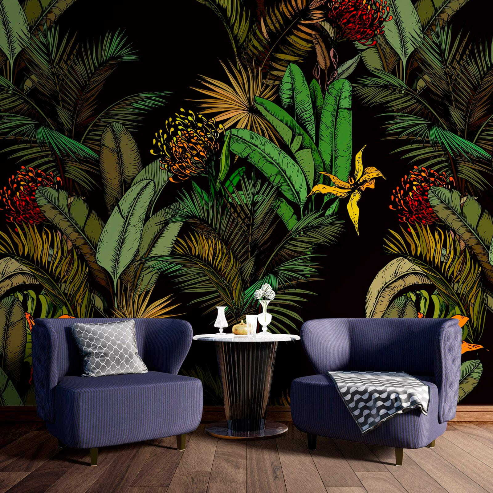 Fotótapéta Dús trópusi lombozat és élénk virágok Fotótapéta Dús trópusi lombozat és élénk virágok