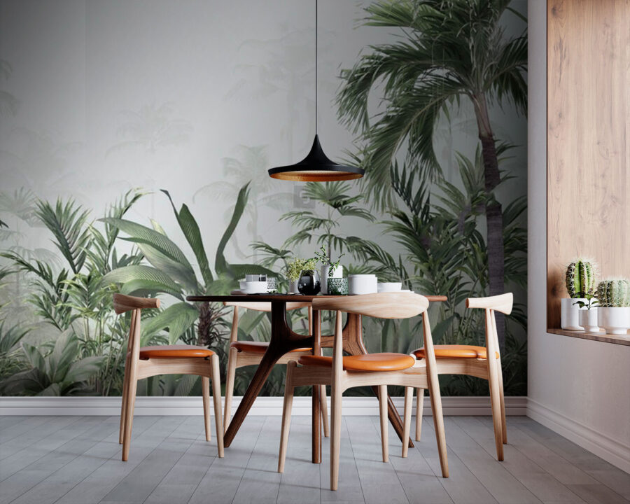 Képzelje el, hogy a paradicsom egy szeletét egyenesen az otthonába hozza. Ez a “Lush Tropical Jungle in Mist” falfestmény élénk zöldjeivel és ködös hátterével bármelyik szobát nyugodt meneküléssé varázsolja. A falfestmény tökéletesen alkalmas arra, hogy egy kis természetet vigyen a terébe, és arra invitálja, hogy merüljön el egy trópusi erdő melegében anélkül, hogy fel kellene hagynia a kanapéját. Képzelje el, ahogy a nappalijában kávét kortyolgatva úgy érzi, mintha egy távoli dzsungelben lenne. Ideális mindenkinek, aki egy kicsit több kalandra (és néhány pálmafára) vágyik a mindennapjaiban. A dzsungel hangulata – a levelek látszólag zizegnek a szélben – dinamizmust és egy kis titokzatosságot kölcsönöz. Ez nem csak dekoráció, hanem egy élmény, amely egy hétköznapi falat álomszép, zöldellő rejtekhellyé változtathat. Tökéletes gyerekszobákba, társalgókba, vagy akár egy fürdőszobába is, ahol jól jönne egy kis trópusi nyugalom!