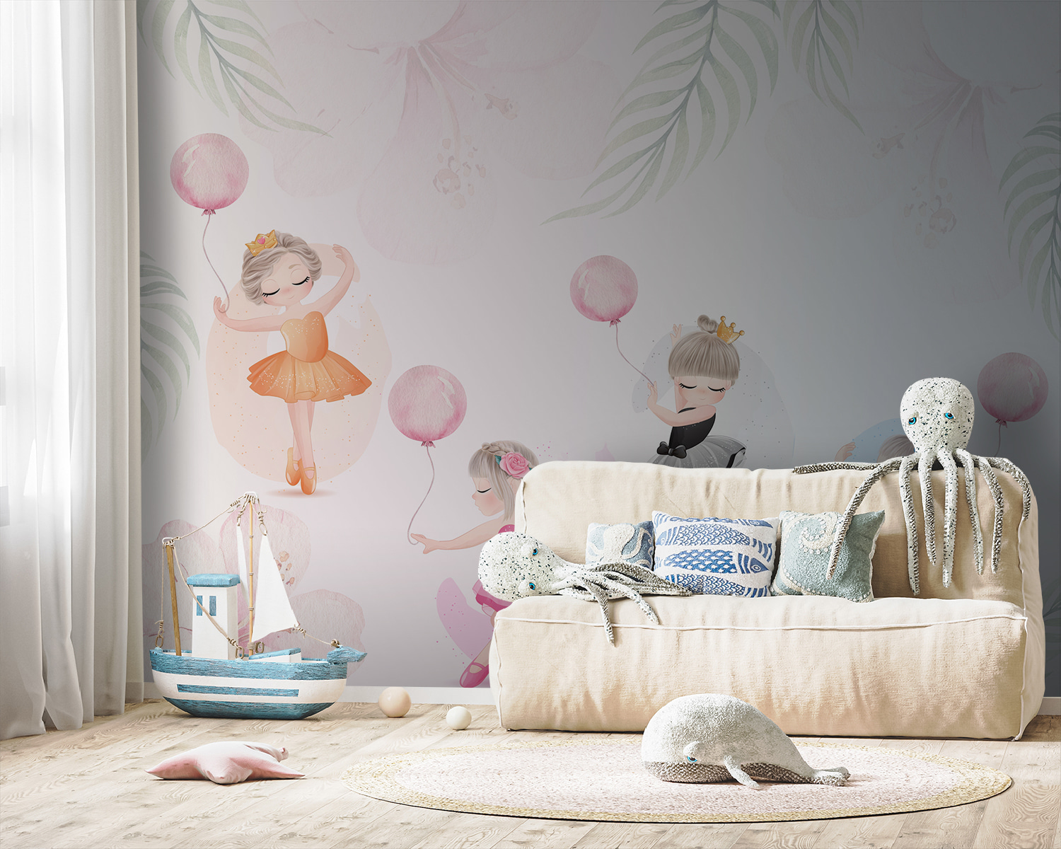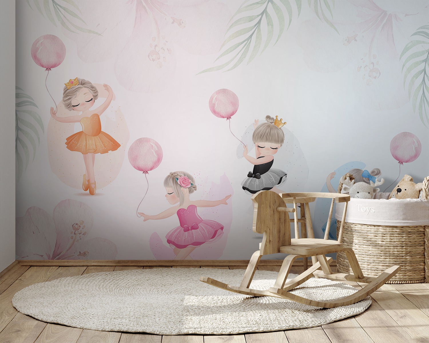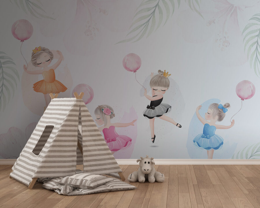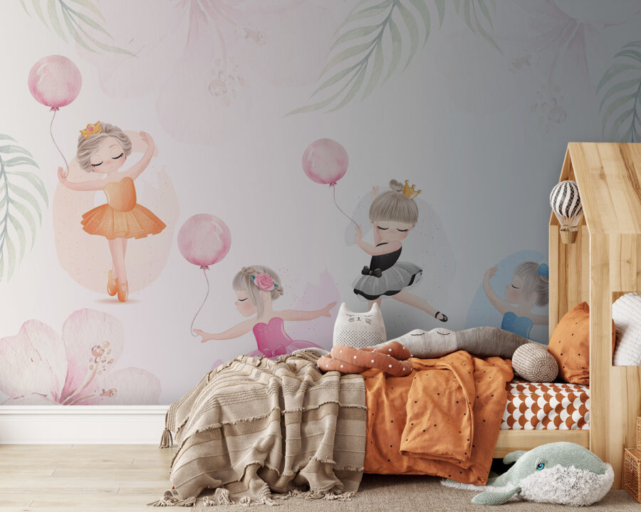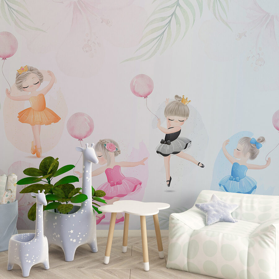 Képzelje el ezt az imádnivaló falfestményt, mintha egy álomországba lépne, ahol balerinák táncolnak a lágy, akvarellszínű virágok között. Tökéletes egy gyerekszobába, szelíd varázsa van, amely bármilyen teret szeszélyes menedékké varázsol. A lufikkal pörgő, tütübe öltözött kislányok annyi személyességet kölcsönöznek – szinte hallani a kacagást és a mesebeli suttogást. Ez egy bájos módja annak, hogy kreativitásra és örömre ösztönözzön, egy kis eleganciával megspékelve. Ráadásul a finom színek gyönyörűen illeszkednek bármilyen dekorációhoz. Képzelje el, ahogy a kisgyermeke minden nap erre ébred? Tiszta varázslat.