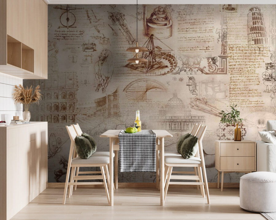 Képzelje el, hogy átalakítja terét ezzel a lenyűgöző falfestménnyel, a “Ló rajzával”. Olyan, mintha egy reneszánsz művész vázlatfüzetébe lépne, tele bonyolult részletekkel és egy csipetnyi misztikummal. Tökéletes mindenkinek, aki szereti a történelmet és az eleganciát a dekorációjában. Ez nem csak egy tapéta – ez egy beszélgetésindító. Képzelje el dolgozószobájában vagy nappalijában; hirtelen olyan lesz a szoba, mintha egy régi könyvtár hangulatos zugában lenne. A gazdag textúrák és az időtlen témák olyan érzést keltenek, mintha a múlt meséi vennék körül. És az a ló? Csak azért könyörög, hogy történeteket meséljenek róla. Nem túl feltűnő, de mindenképpen figyelemfelkeltő. Pontosan a megfelelő egyensúly ahhoz, hogy a falaid ne legyenek unalmasak.