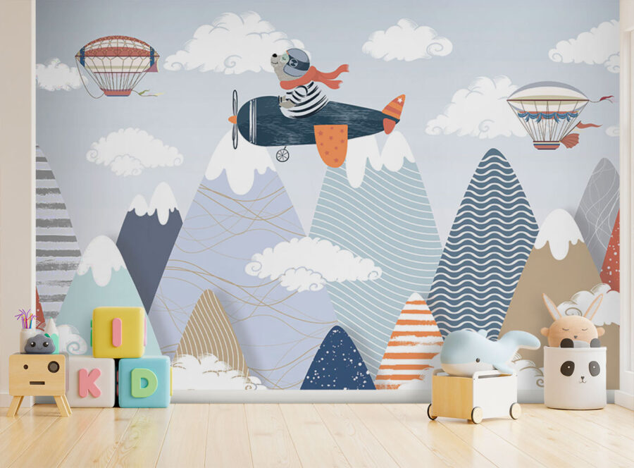 Képzelje el, hogy gyermeke szobájába lépve egy olyan szeszélyes jelenet fogadja, mintha egyenesen egy kalandos történetből lépett volna ki! Ez a falfestmény, amelyen vidám hőlégballonok siklanak a színes, absztrakt hegyek fölött a pelyhes felhők között, varázslatossá varázsolja a teret. Tökéletes arra, hogy beindítsa gyermeke képzeletét – úgy érezhetik, mintha saját égi expedíciójukat vezetnék. A meleg, hangulatos színek és a játékos minták komoly bájt kölcsönöznek. Tökéletes gyerekszobákba vagy játszószobákba, ez a falfestmény nem csak dekoráció, hanem a végtelen kalandok kapuja! Álmodj nagyot, vitorlázz magasra!
