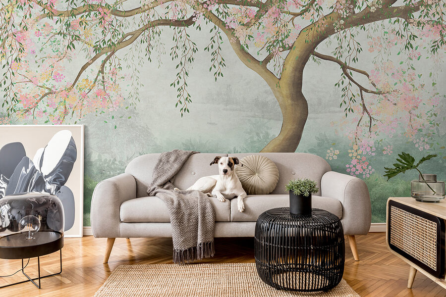 Azok a virágok? Szinte úgy néznek ki, mintha le tudnának lebegni a falról. A fa pedig kecses ágaival mintha arra hívna, hogy ülj le alá egy csendes pillanatra. Csak állj meg, vedd magadba az egészet, érezd, ahogy a nyugalom beszivárog a napodba. Képzelje el, ahogy ez a falfestmény nyugodt fényt áraszt az esti mesék alatt, vagy szelíd hátteret ad a mindennapi nyüzsgésnek.