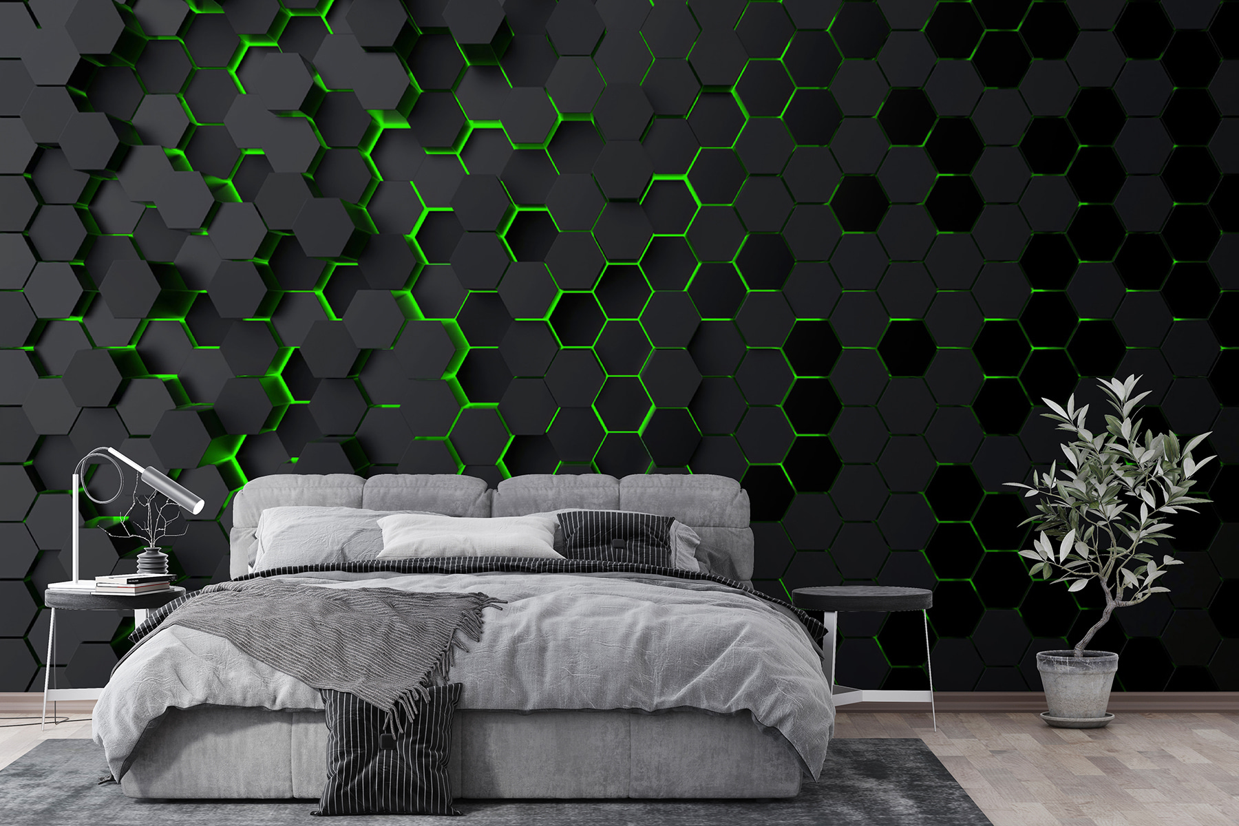 Fotótapéta Fekete hatszögek zöld fénnyel termékről 1 értékelés
