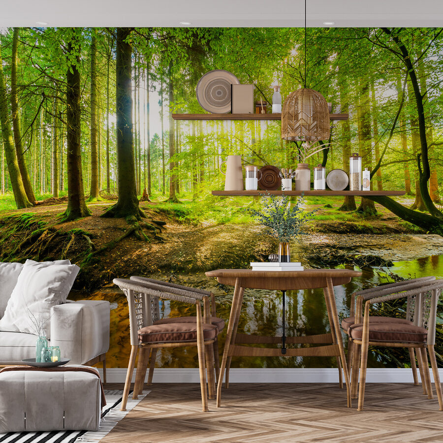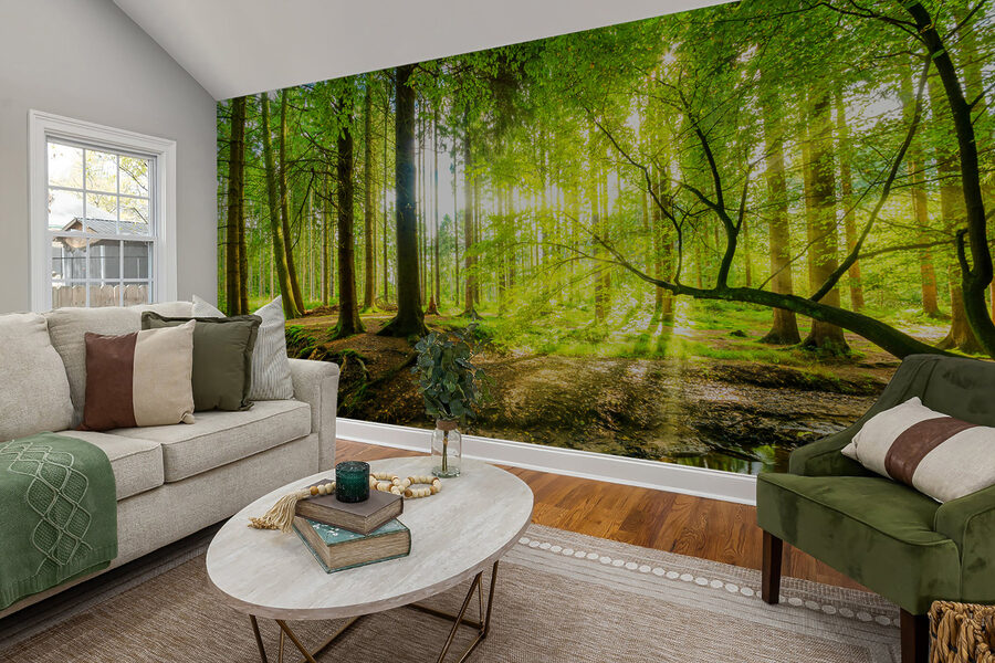 Képzelje el, hogy minden alkalommal, amikor belép a szobába, a saját kis erdei menedékébe lép. Ez a falfestmény egy vibráló erdei jelenetet hoz egyenesen a helyiségedbe, magas fákkal és a leveleken átszűrődő napfénnyel. Olyan, mintha maga a természet döntött volna úgy, hogy beköltözik. Képzelje el, hogy egy jó könyvvel kucoroghat, a zöld árnyalatai és az erdei talaj lágy, földes hangulataival körülvéve. És hé, ha valaha is szükséged van egy pillanatra, hogy elmenekülj a mindennapok elől, ez a falfestmény gondoskodik rólad. Tökéletes arra, hogy kirándulásokról és szabadtéri kalandokról ábrándozzon, vagy csak élvezze a hangulatos estéket a lakásban. Ez a nyugalom egy csipetnyi nyugalom, amely nagy hatást gyakorol, és bármelyik falat egy lélegzetvételnyi friss levegővé varázsolja. Ki tudna ellenállni?