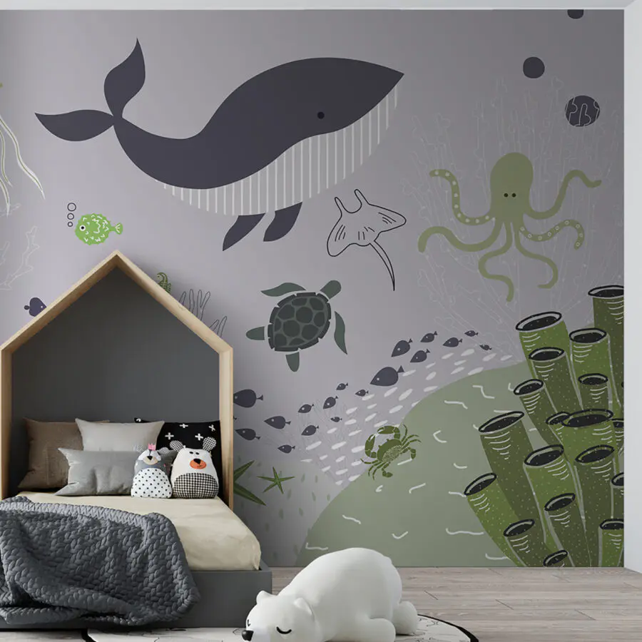 Ideális arra, hogy bármilyen térbe vidámságot varázsoljon, még a legunalmasabb szoba is azonnal feldobja. Képzelje el, hogy a kicsik erre a vibráló jelenetre ébrednek; olyan, mintha vizesedés nélkül búvárkodna! Imádni fogják felfedezni a falfestmény minden szegletét, és minden nap új tengeri élőlényeket fognak felfedezni. Tökéletes gyermekszobába vagy játszószobába, akár a lánya, akár a fia számára – ez egy csodálatos módja annak, hogy a természet iránti szeretetet tápláljuk. És legyünk őszinték, nem csak gyerekeknek való… néha a felnőtteknek is szükségük van egy kis szeszélyre. Merüljön el, és hagyja, hogy ez a falfestmény hullámokat verjen a dekorációjában!