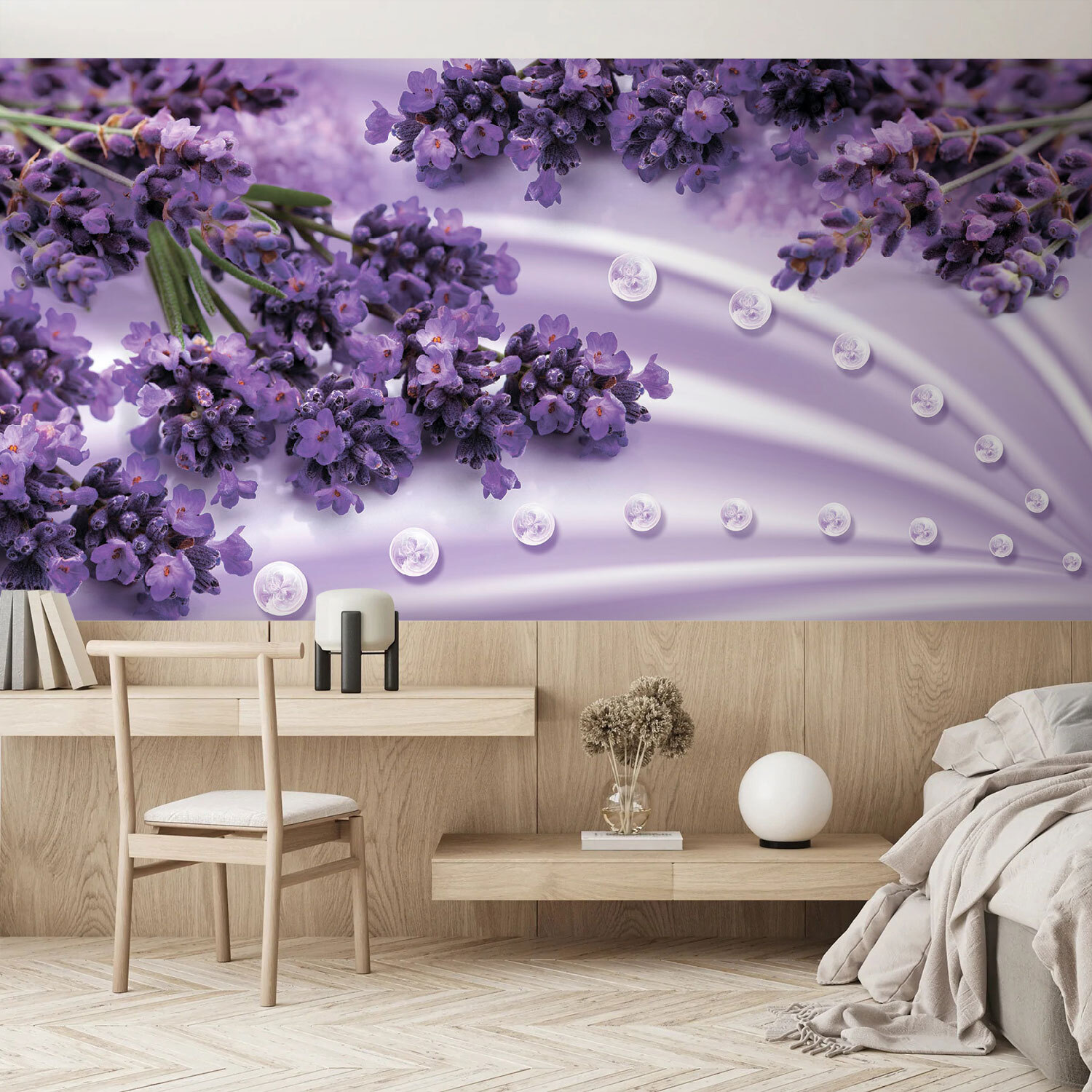 A tér átalakítása még soha nem volt ilyen egyszerű ezzel a lenyűgöző falfestménnyel, amely levendulavirágokat ábrázol egy lágy háttéren. Képzelje el, hogy belép egy olyan szobába, amely olyan, mint egy szellős délután egy levendulamezőn – derűs és felemelő. A finom virágok kiemelkednek a lágy színek közül, és olyan nyugalmat árasztanak, amely tökéletes a pihenés vagy a kreativitás pillanataihoz. Képzelje el, ahogy egy jó könyvvel összegömbölyödik, a virágos jelenet pedig vigasztaló ölelésként öleli körbe. Ez nem csak dekoráció, hanem egy lehetőség arra, hogy elmenekülj a mindennapi káosz elől, és hagyd, hogy a képzeleted elkalandozzon. Ki ne vágyna erre?