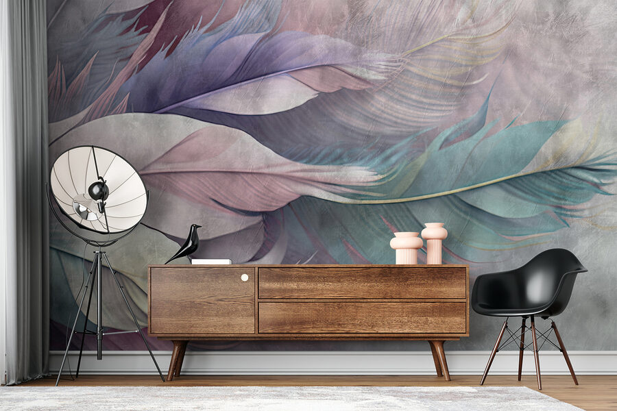 Alakítsa át terét ezzel a falfestménnyel, amelyen színes tollak táncolnak egy lágy, tompa háttéren. Olyan, mintha a természet ecsetet hozott volna a faladra. Képzeld el, ahogy egy hangulatos sarokban kávét szürcsölgetsz, és csak csodálod azokat a szelíd árnyalatokat, amelyek a világos rózsaszín, a teal és a levendula álomszerű ölelésben kavarogva látszanak változni. Ez a falfestmény nem csak dekoráció; beszélgetésindító, hangulatjavító. Akár egy hálószobában, akár egy élénk nappaliban, ezek a tollak nyugalmat árasztanak, vagy kreativitást ébresztenek. Olyan, mint egy kis műalkotás, amely a léleknek suttog. Felakasztása olyan érzés, mintha egy varázslatos szellőt hívna be, és őszintén, ki ne szeretné ezt?