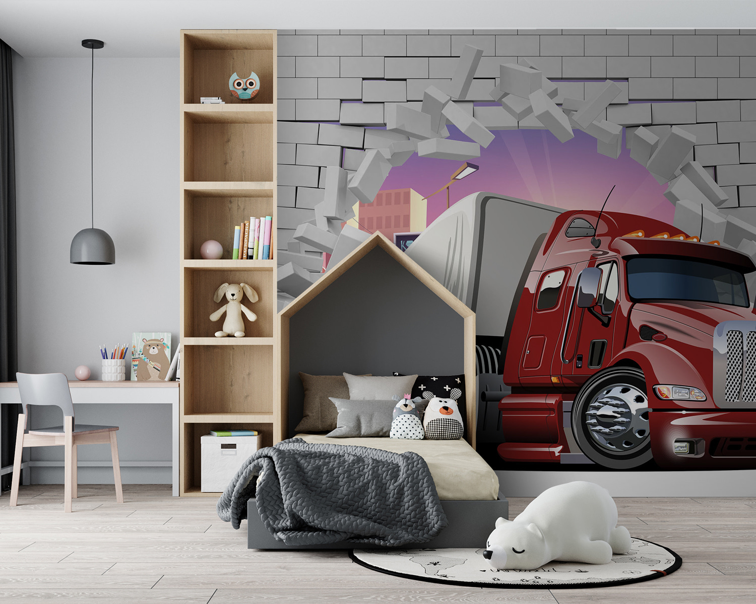 Ennek a falfestménynek a címe “Teherautó áttöri a falat”, és fiú, ez méltó a nevéhez! Képzeld el, hogy egy hatalmas, piros teherautó tör át a nappalid falán – olyan, mintha egy akciófilm jelenetét élnéd át. Van egy autómániás gyereked? Ettől eldobnák az agyukat, és talán egy szempillantás alatt rávehetnék, hogy megcsinálják a házi feladatukat (drukkoljunk)! A részletek olyan élesek, hogy szinte kacsázni támad kedved! Tökéletes, ha egy gyerekszobát vagy akár egy garázst szeretnél feldobni. Az emberek minden alkalommal kétszer is megnézik majd, amikor elmennek mellette. Ráadásul nem csak gyerekeknek való – az autórajongók is odavannak érte. Dobja fel a helyiség hangulatát ezzel a figyelemfelkeltő, beszélgetésre késztető falfestménnyel. Váratlan, egyedi és egy kicsit lázadó!
