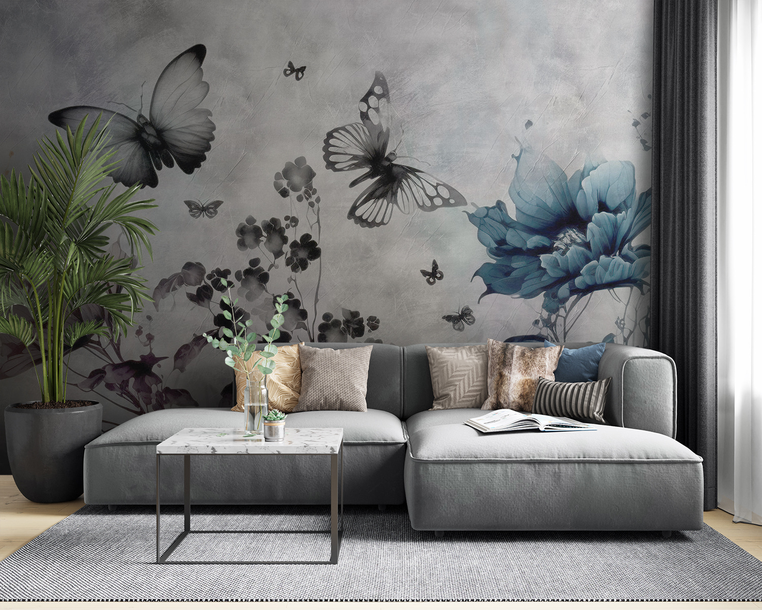 Alakítsa át terét ezzel a varázslatos falfestménnyel, amelyen pillangók táncolnak a levegőben. Képzelje el, hogy ezekre a finom teremtményekre ébred, amint körülöttük repkednek, és bájos és szeszélyes hangulatot kölcsönöznek a szobájának. A lágy akvarell dizájn gyönyörűen ötvözi a kék és a szürke árnyalatait, nyugodt és álmodozó hangulatot teremtve. Képzeljen el egy hangulatos olvasósarkot vagy egy nyugodt hálószobát, ahol ez a falfestmény életre keltheti a falakat. Olyan, mintha a természet egy apró darabkáját hoznád be a házba – bogarak nélkül! Ez a falfestmény nem csak dekoráció; ez egy napi adag inspiráció, amely mindenkit arra emlékeztet, hogy fogadjuk el az apró dolgok szépségét. Tökéletes azok számára, akik szeretik az egyediséget!