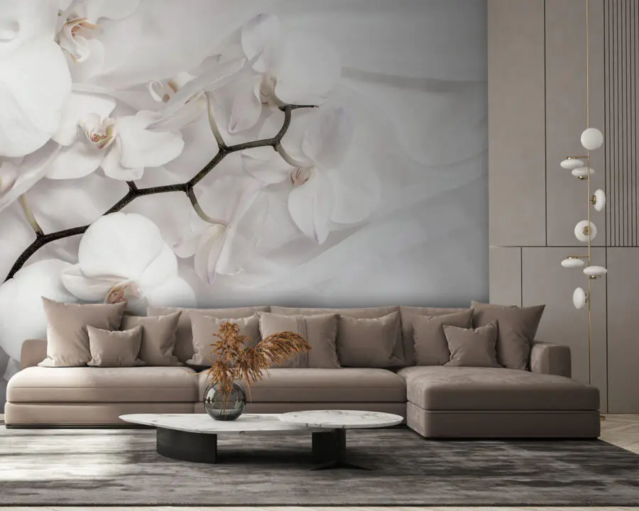 Transform any room with this stunning wall mural featuring delicate white orchids on a soft, white fabric backdrop. Imagine your space feeling like a serene garden oasis—perfect for those days when you just wanna escape the chaos of life. The elegant blooms add a touch of tranquility, making it hard not to smile every time you walk by.