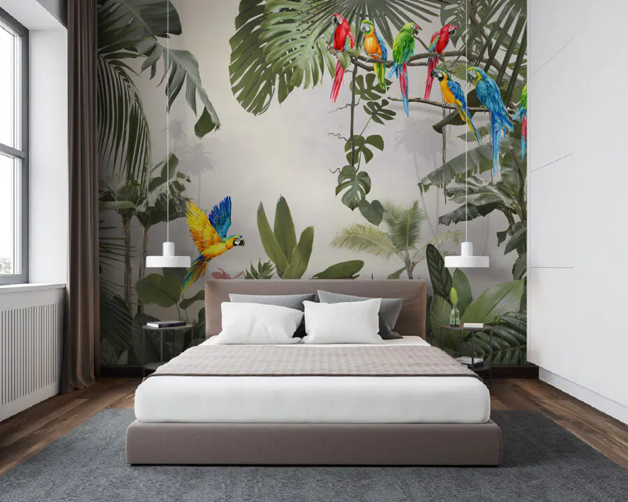 Gondoltál már arra, hogy egy trópusi paradicsomot hozhatsz a nappalidba? Ez a falfestmény, amelyen egy ágon ülő, lenyűgöző kék és sárga papagáj látható, talán tökéletes megoldás lehet. Képzelje el, ahogy a vibráló színek és a bonyolult részletek azonnal feldobják a teret – olyan, mintha egy mini vakációra indulna, valahányszor belép a szobába. A zöld levelek keveréke és a papagájok színpompája olyan élénk és egzotikus érzést kelt. Tökéletes beszélgetésindító is. (Ráadásul garantáltan feldobja a hangulatot a szürke napokon!) Akár a nappali, a hálószoba vagy akár a munkaterület falára készül, ez a falfestmény bármelyik hétköznapi falat lélegzetelállító meneküléssé varázsolja. Úgy fogod érezni magad, mintha egy trópusi dzsungelbe léptél volna, méghozzá otthonod kényelméből. Rajta, hagyja, hogy a falai meséljenek egy történetet!
