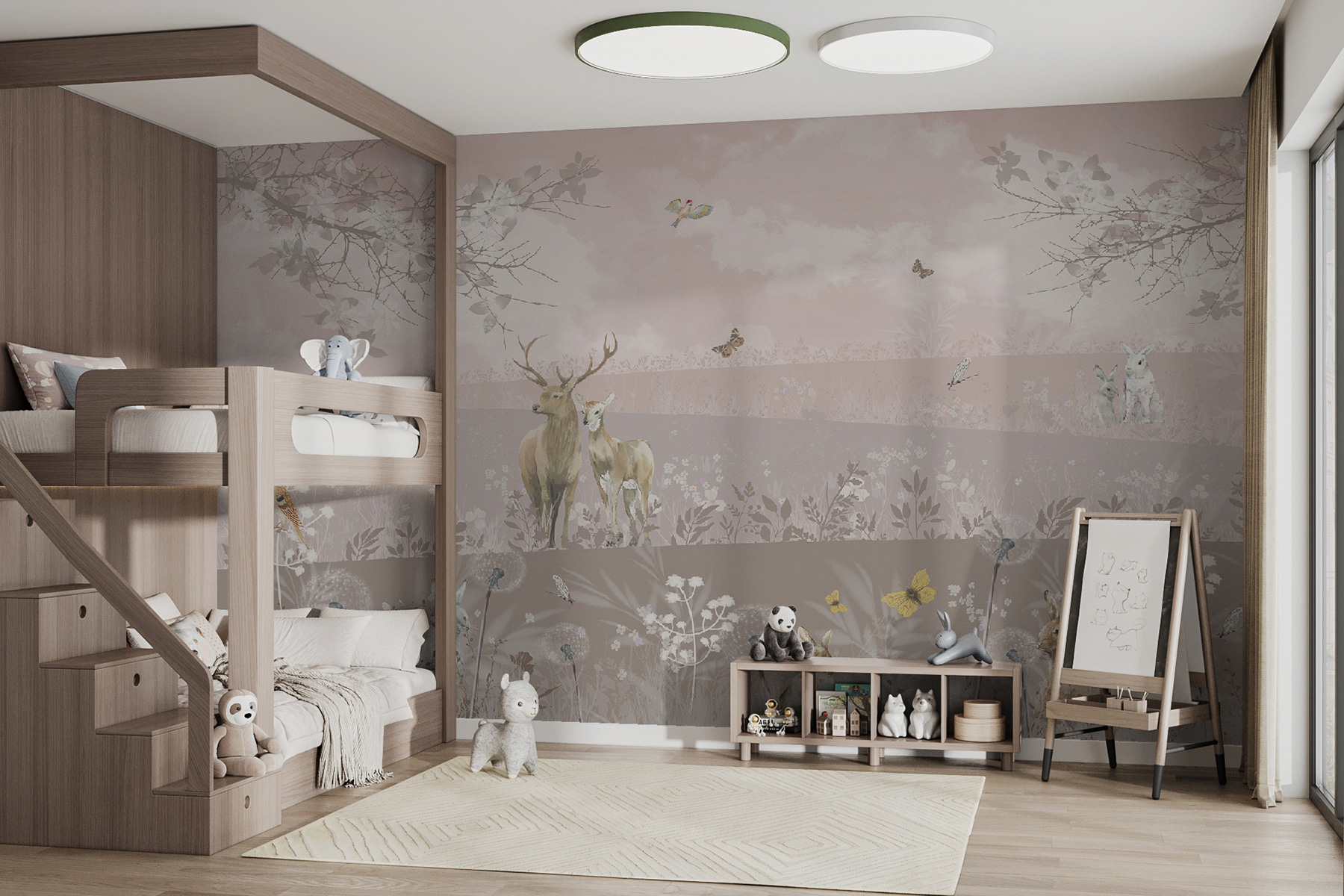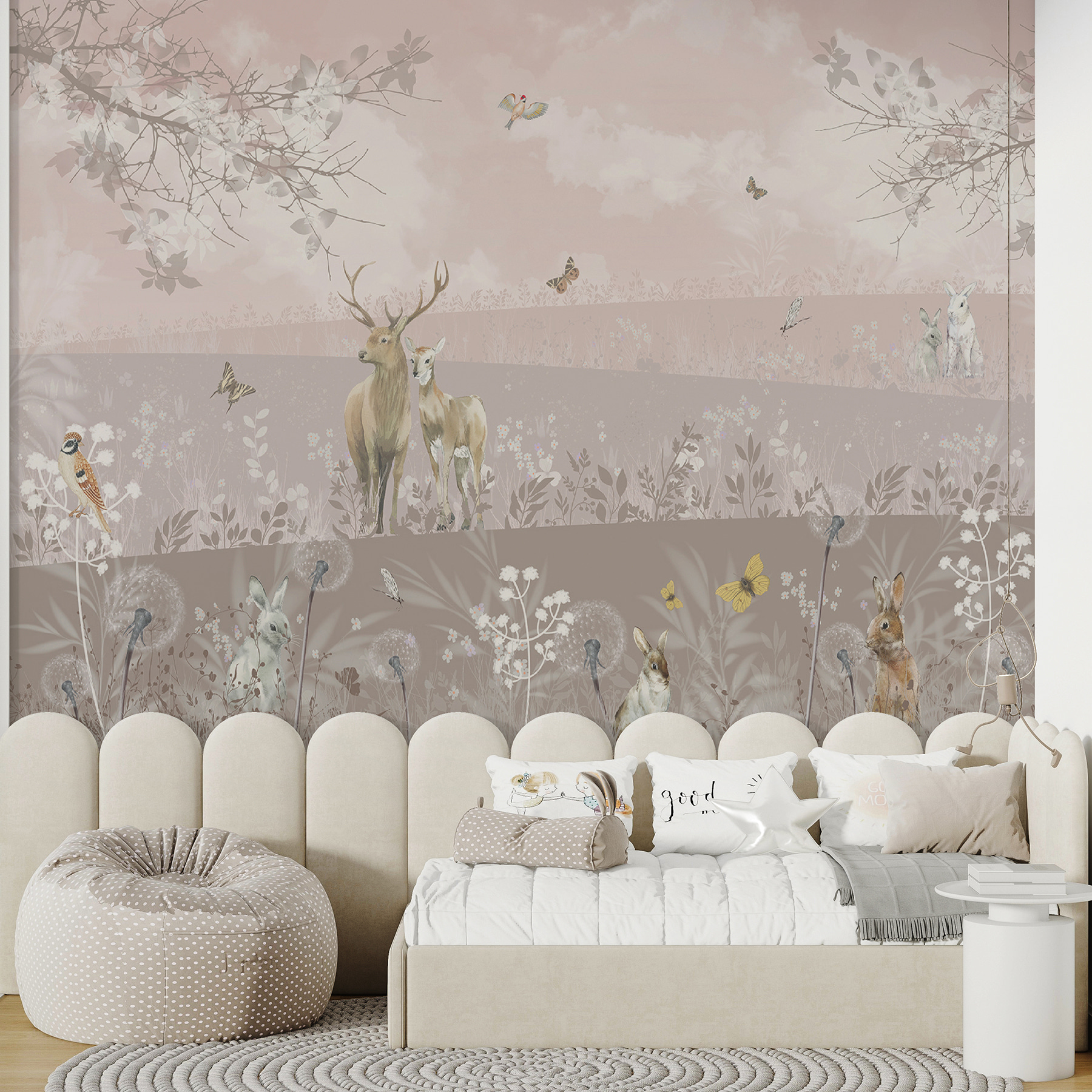 Képzelje el, hogy besétál egy olyan szobába, amely olyan, mint egy álomszerű erdő, ahol szarvasok és nyulak lazán lógnak, és a világ egyáltalán nem zavarja őket. Ezt a hangulatot nyújtja a “Szarvasok és nyulak egy nyugodt tájban” című falfestmény. Tökéletes arra, hogy bármilyen teret nyugodt elvonulási hellyé varázsoljon. Legyen szó akár a lánya szobájáról, egy hangulatos sarokról vagy akár a nappaliról, ez a falfestmény a természet szépségét hozza be. Álmodozni fogsz, lágy szellőket és a levelek zizegését fogod elképzelni, miközben a reggeli kávét iszogatod. A szelíd árnyalatokkal és az imádnivaló vadon élő állatokkal gyakorlatilag könyörög egy jó könyvért vagy egy kis csendes időtöltésért. Tehát, ha már régóta szeretne egy kis varázslatot varázsolni a falaira, akkor ez az ön választása. Ráadásul ki ne szeretne egy kis erdei varázslatot otthonában?
