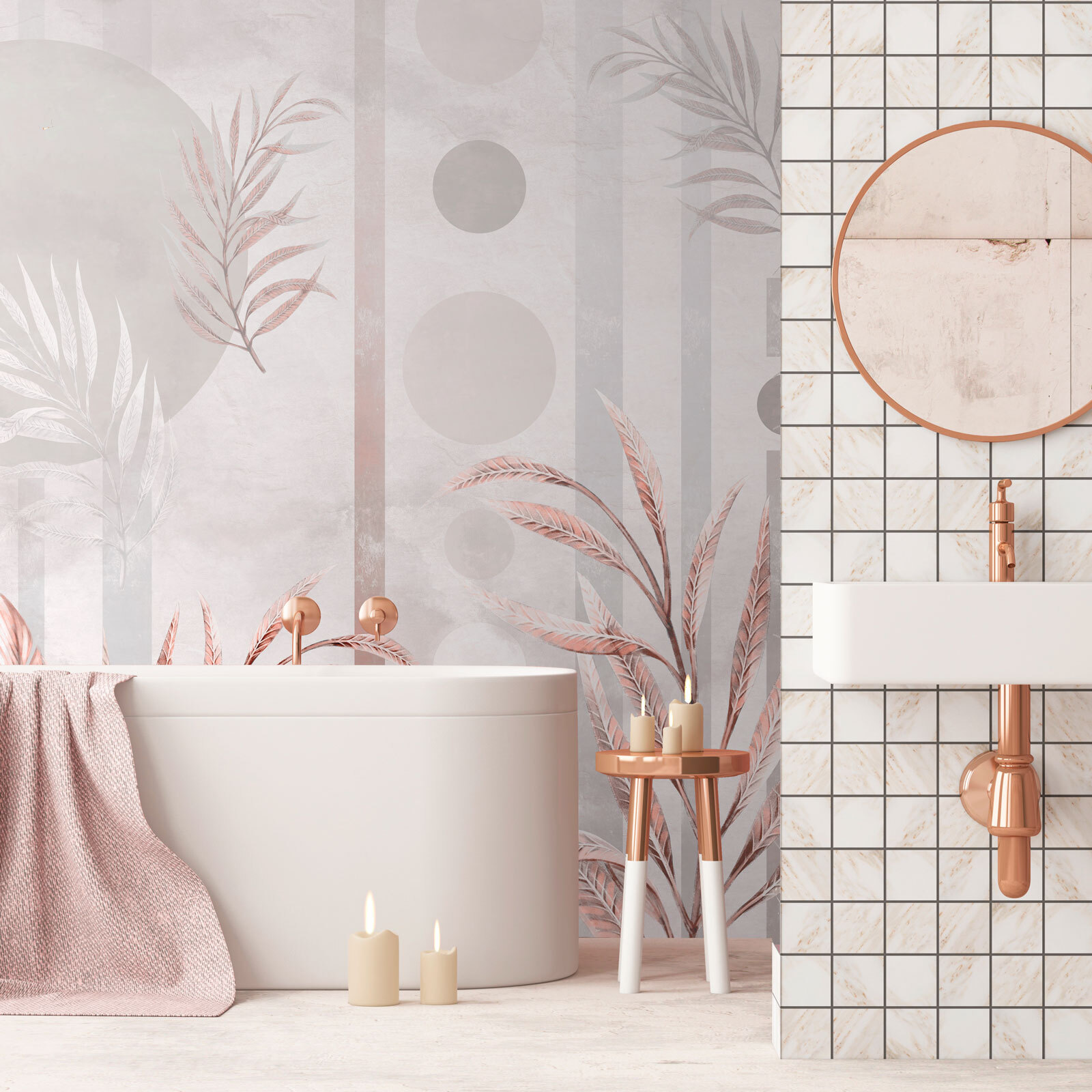 - Különböző színű tapéta különböző csempéken