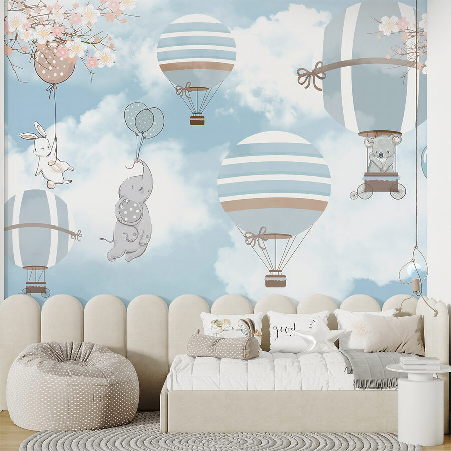 Van egy gyerekszobád, amelyiknek szüksége van egy kis szeszélyre? Nézd meg ezt a bájos falfestményt, amelyen egy csomó imádnivaló elefánt repül hőlégballonokon. Képzeld el: gyengéd kékek és lágy szürkék, játékos vastagbőrűek felvonulása és egy szeszélyes égbolt-háttér, amely olyan, mint egy álom. Tökéletes arra, hogy végtelen csodálatot és kalandot varázsoljon bármelyik kisgyermek helyiségébe. Képzeld el, ahogy kisfiad szeme felragyog, miközben elalszik a vidám elefántok és a bájos léggömbök alatt. Ez a falfestmény nem csak dekoráció – ez a képzelet kapuja. Töltse meg gyermeke szobáját örömmel, és hagyja, hogy a kaland szárnyaljon!