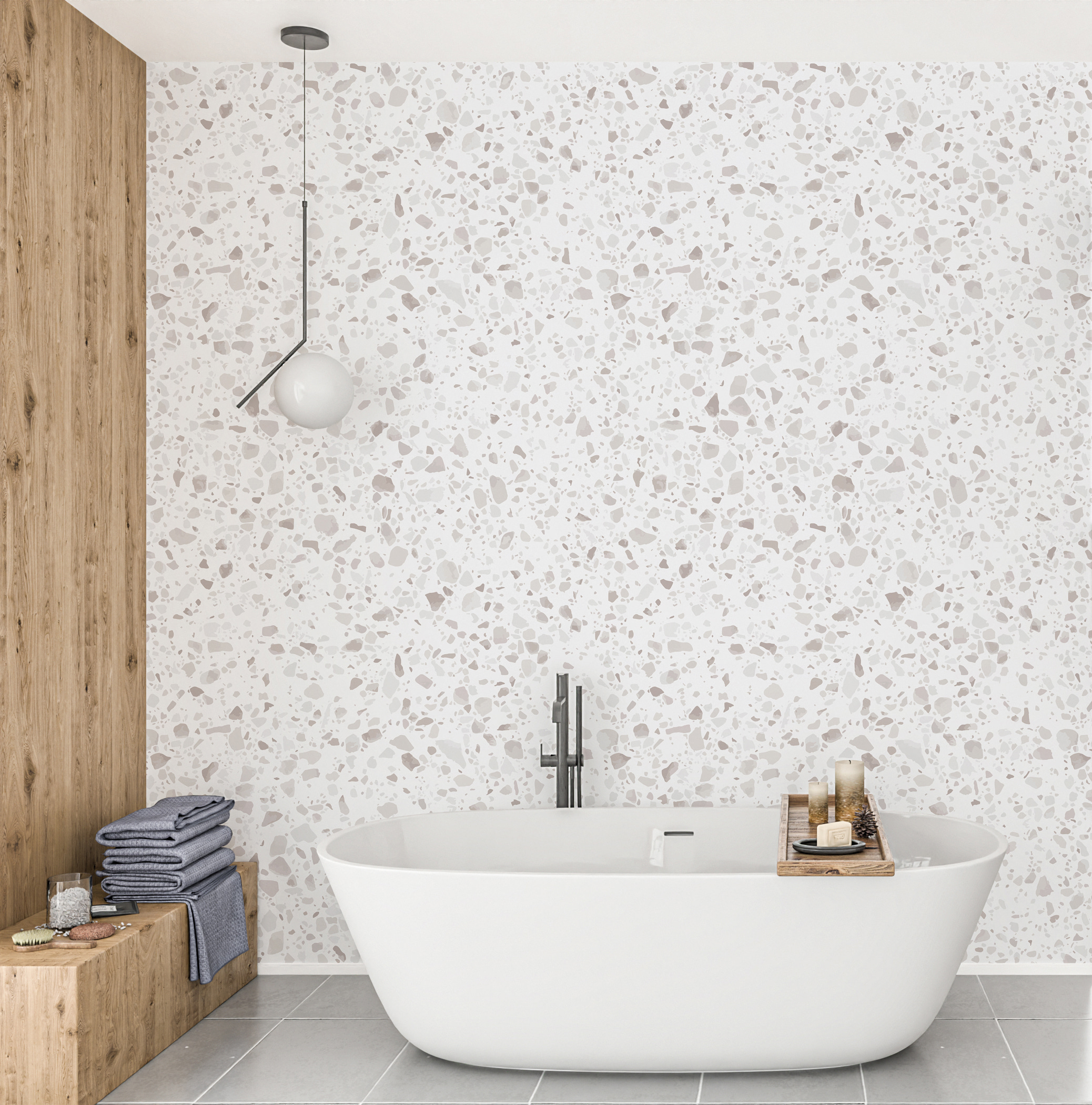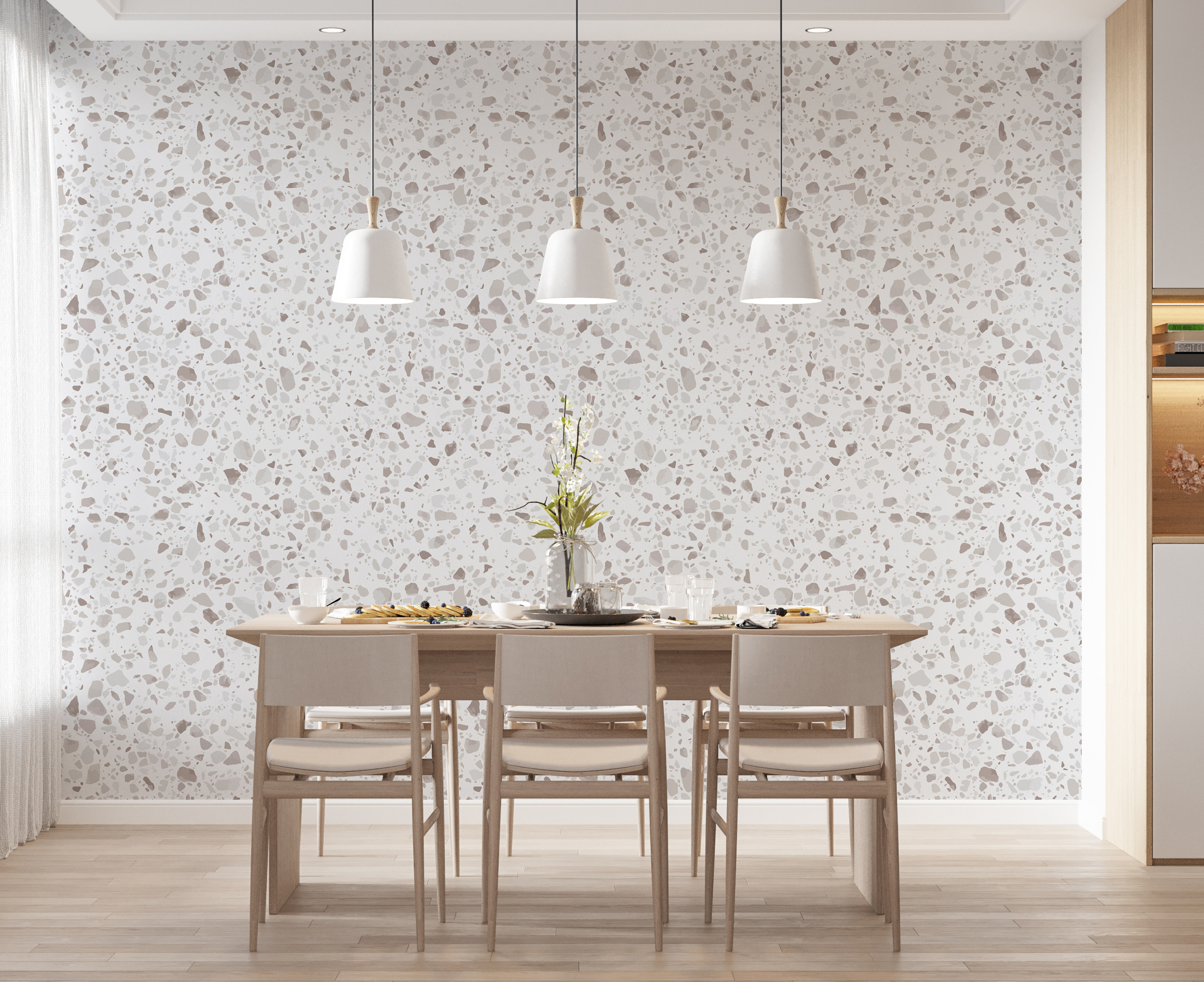 Alakítson át bármilyen helyiséget modern paradicsommá ezzel a fehér pöttyös terrazzo falfestménnyel. Képzelje el, hogy kedvenc kávézójába vagy egy funky művészeti galériába lép – ez a hangulat megvan! A játékos pöttyök táncot járnak a lágy háttéren, könnyed stílusérzetet teremtve. Képzelje csak el, hogy minden nap erre a friss megjelenésre ébred. Ideális egy unalmas helyiség feldobására, vagy egy kiabálás nélküli kijelentésre. Tökéletes egy hangulatos olvasósarokba vagy egy szeretetért könyörgő üres falra. Ráadásul ez a tapéta hámozható és ragasztható, így nem kell profikat hívni. Egyszerű, szórakoztató és jól néz ki – mit nem lehet szeretni?
