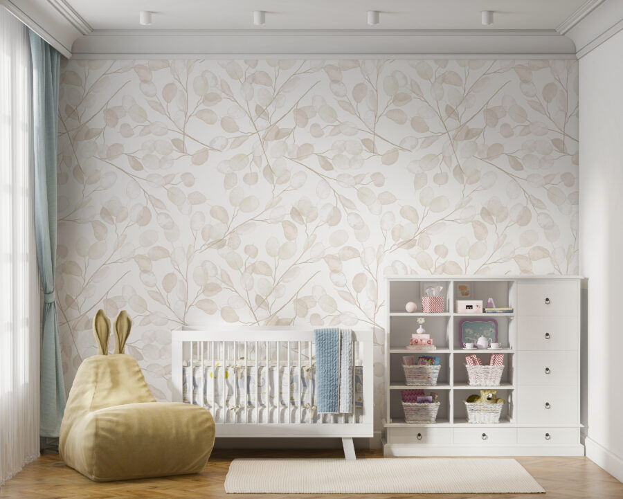 Alakítson át bármilyen teret ezzel a bájos, lágy, finom növényi mintákkal díszített falfestménnyel. Olyan, mintha a természet suttogását hozná be a lakásba – tökéletes egy gyerekszobába vagy egy kislány szobájába. Képzelje el: gyermeke felnéz a finom levelekre, és elvarázsolt erdőkben való kalandokról vagy pillangótáncról álmodik. A gyengéd színek nyugodt légkört teremtenek, így ez a szoba egy nevetéssel és játékkal teli nap után meghitt visszavonulást biztosít. Ez nem csak dekoráció; ez egy vászon a képzeletnek! Ez a falfestmény történetekre, kacagásra és édes álmokra hív, így minden pillanatot egy kicsit különlegesebbé tesz a szobában. Képzelje csak el a mosolyokat!