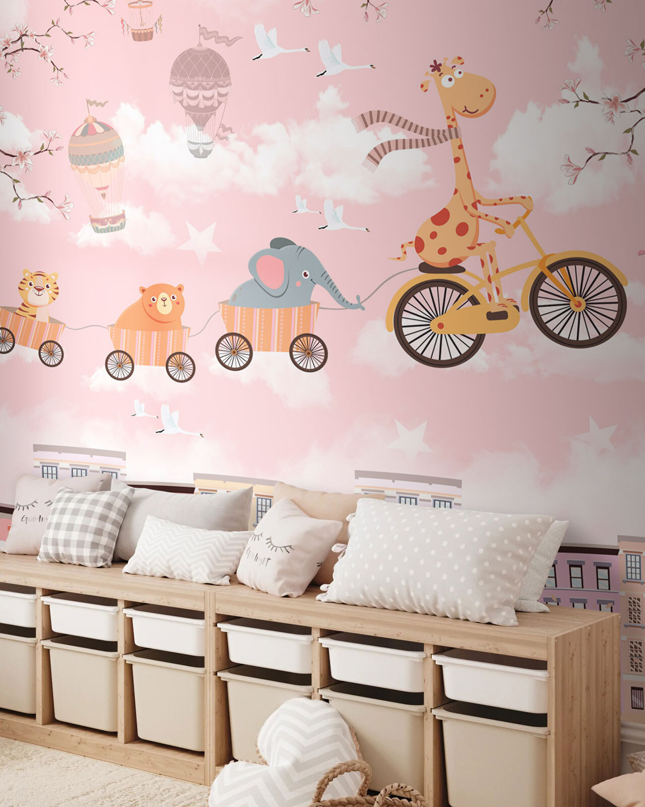 Képzelje el, hogy minden reggel kalandra ébred! Ez a játékos falfestmény, a “Fotótapéta Animals Cycling Through the Sky Happily”, a Children’s Fotótapéta kollekcióból, tiszta örömet hoz bármelyik szobába. Képzelj el egy zsiráfot és imádnivaló állatbarátait, amint pelyhes felhőkön keresztül szállnak pasztellszínű házak és hőlégballonok között – olyan, mintha saját szeszélyes parádéjuk lenne. Tökéletes a kisgyermek szobájába, örömöt ébreszt és beindítja a képzeletet. A gyerekek kuncogva álmodozhatnak arról, hogy csatlakoznak a mókához, és úgy érezhetik, hogy saját titkos égi utazásuk van. Ez a bájos és felemelő falfestmény az üres falakat álomszép mesekönyvi jelenetté varázsolja.