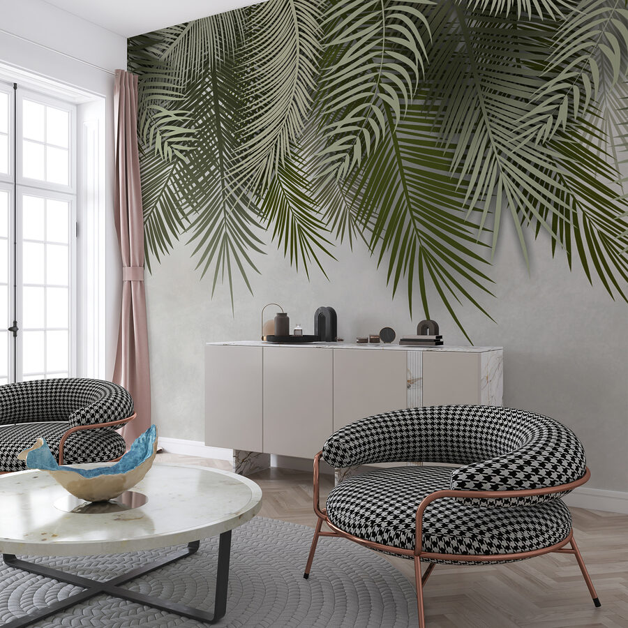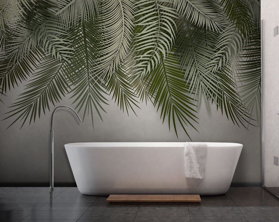 A falfestmény élettel teli, de nem nyomasztó. Éppen elég ahhoz, hogy a meleg, szellős napokra gondoljon anélkül, hogy a növények öntözésével kellene foglalkoznia. Jól illik a minimalista dizájnhoz, vagy feldobhatod néhány élénk, trópusi témájú dekorációval – szuper sokoldalú! Ez a dizájn életet és frissességet lehel, olyan érzést keltve, mintha egy lombkorona alatt feküdne, és az égre nézne. Mennyire menő ez?