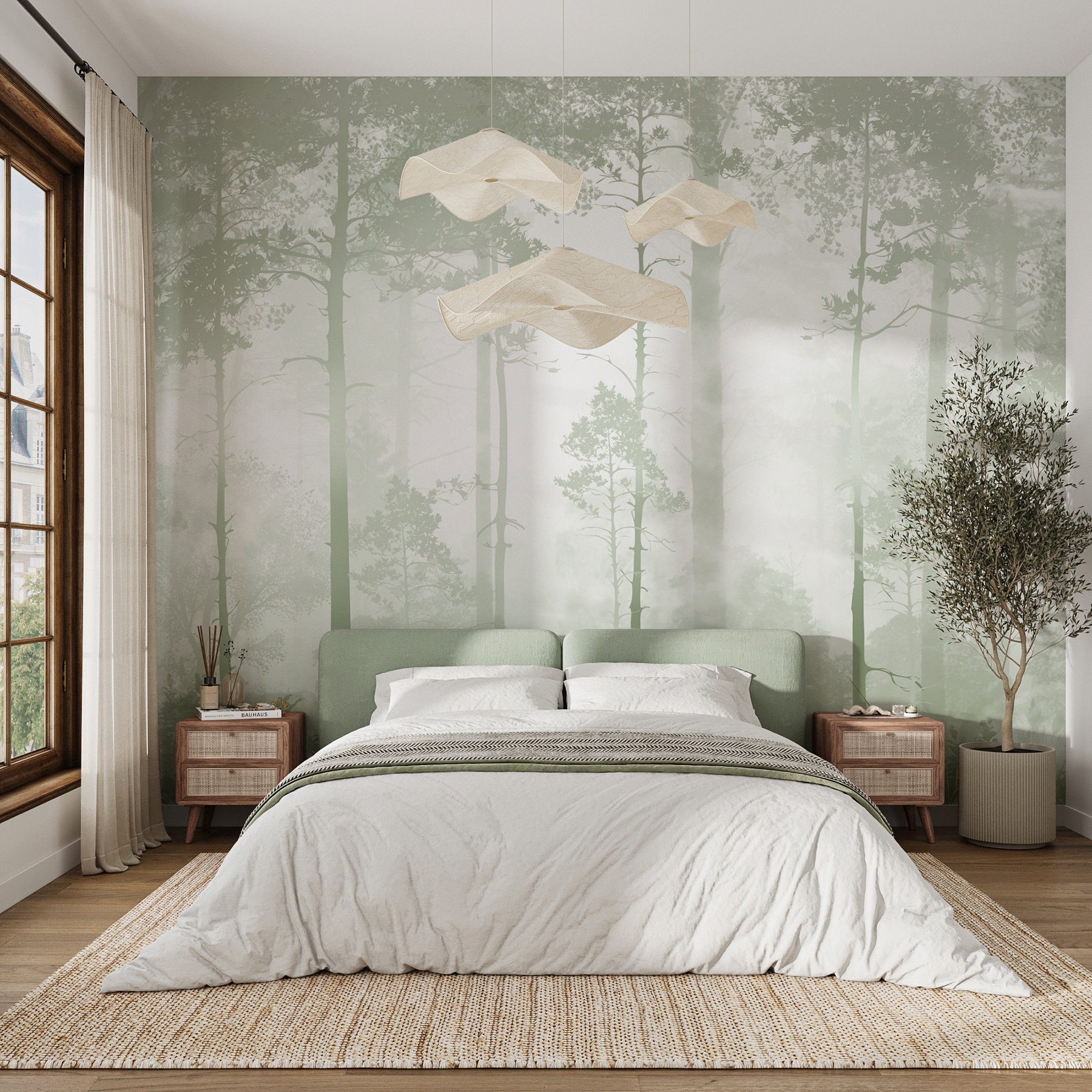 Bármelyik helyiséget békés elvonulási hellyé varázsolhatod ezzel a ködös erdei falfestménnyel. Képzelje el, hogy a ködbe burkolózó magas fák nyugodt látványára ébred, mintha egy nyugtató álomba lépne. Ez nem csak egy falburkolat; ez egy meghívás arra, hogy belélegezd a friss erdei levegőt, még akkor is, ha éppen a konyhában kávézol. Képzeljen el egy hangulatos olvasósarkot, amelyet ez a nyugodt háttér vesz körül – tökéletesen alkalmas egy jó könyvvel való összebújásra. És hé, ki ne szeretné, ha a tér egy kicsit varázslatosabb lenne? A tompa zöldekkel és lágy mintákkal olyan, mintha a természet úgy döntött volna, hogy a nappalijába költözik. Tökéletes azokban a pillanatokban, amikor az élet egy kicsit túl kaotikusnak tűnik. Hagyja, hogy ez a falfestmény egy kis békét hozzon az otthonába.