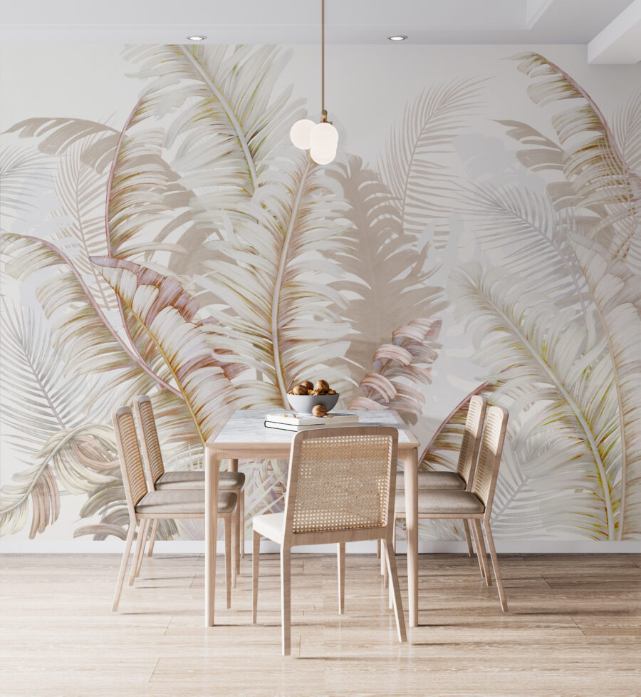 Képzelje el, hogy otthon ül kedvenc helyén, a természet nyugodt szépségével körülvéve, anélkül, hogy ki kellene lépnie a szabadba. A “Trópusi levelek szelíd árnyalatokban” falfestmény elviszi Önt oda. A trópusi levelek lágy, tompa tónusai a nyugalom oázisát teremtik meg, amely tökéletes bármely olyan helyiségbe, amelynek szüksége van egy kis nyugalomra. Ez nem csak tapéta; olyan, mintha az erdő szelíd suttogása lenne. Hát nem érzed, ahogy a szellő susog a levelek között? Telepítse ezt a dizájner falfestményt, és alakítsa át a helyiséget egy békés elvonulási hellyé – a saját kis paradicsomának egy szeletévé.