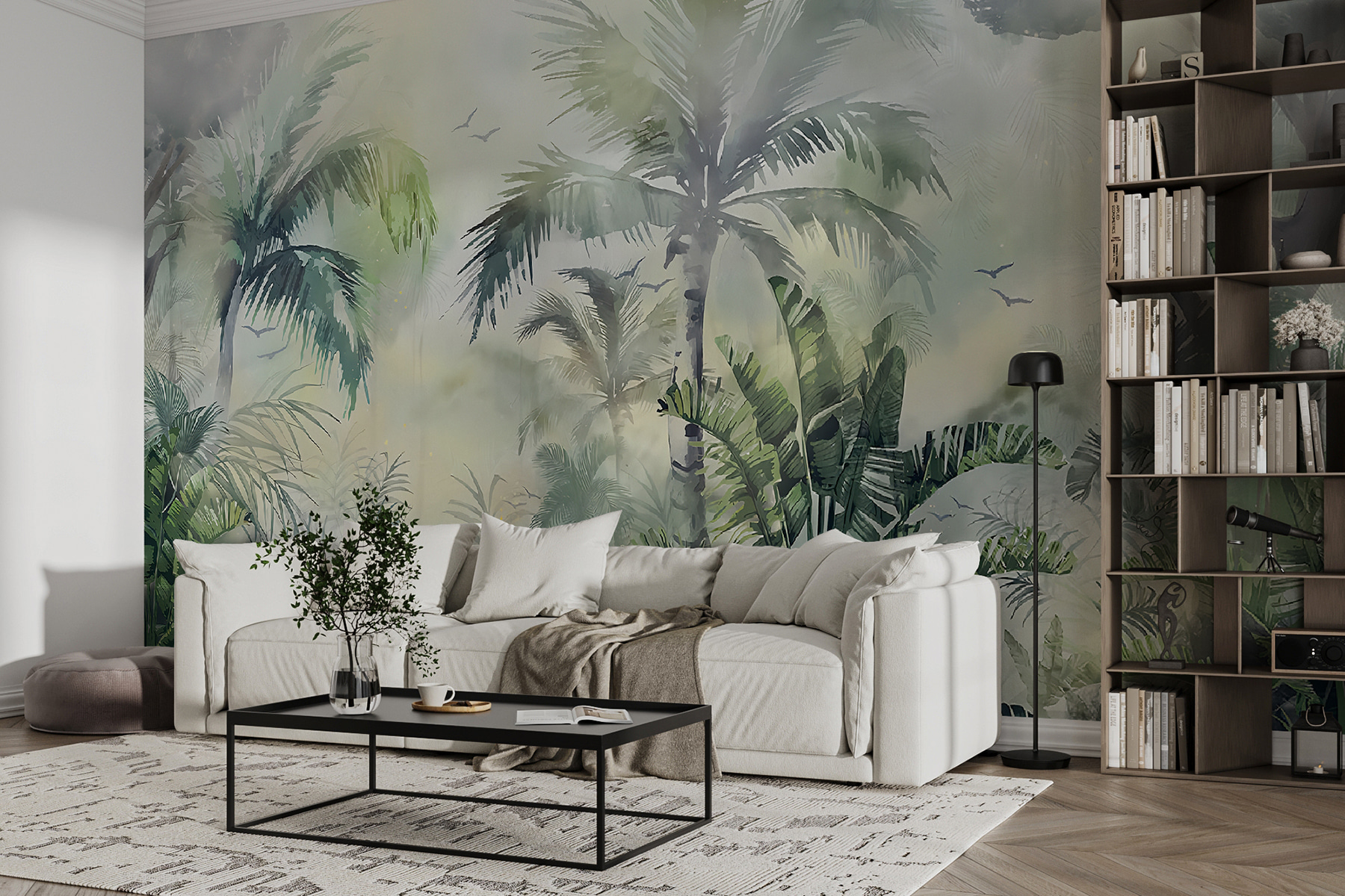 Alakítson át bármilyen szobát buja paradicsommá ezzel a lenyűgöző, ködös dzsungelt ábrázoló falfestménnyel. Képzelje el, ahogy a sűrű lombok között sétálgat, friss levegőt szív be – ó, a nyugalom! Olyan, mintha egy mini vakációra indulnál otthon, de az utazási stressz nélkül. A lágy zöldek és a szelíd ködfoszlányok nyugodt hangulatot árasztanak, és tökéletesek egy hangulatos olvasósarokba vagy egy nyugodt hálószobába. Ráadásul ki ne szeretné úgy érezni magát, mintha minden nap egy trópusi üdülésen kortyolgatna egy italt? Készüljön fel, hogy átölelje a vadon kalandját, mindezt a kanapé kényelméből.