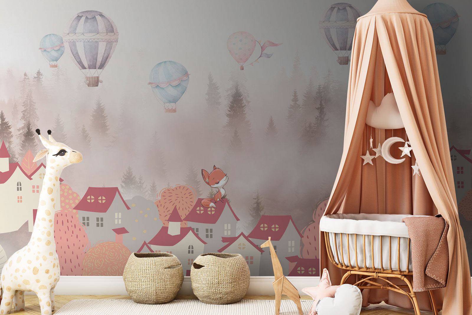 Alakítsd át a teredet ezzel a szeszélyes faliképpel, amelyen egy bájos róka ül a színes tetők tetején. Képzeld el, milyen nyugalmat áraszt, mintha egy hangulatos mese lenne a saját otthonodban! A hőlégballonok lustán lebegnek az égen, játékos hangulatot kölcsönözve és kalandos álmodozásra csábítva. Tökéletes választás egy gyerekszobába vagy egy hangulatos olvasósarokba, és kellemes emlékeztető arra, hogy a mindennapi életben is helye van a fantáziának. A lágy színek meghitt hangulatot teremtenek – ki tudna ellenállni egy olyan faliképnek, amely minden alkalommal örömet okoz, amikor elhalad mellette? Mintha egy kis varázslat lenne a falán!