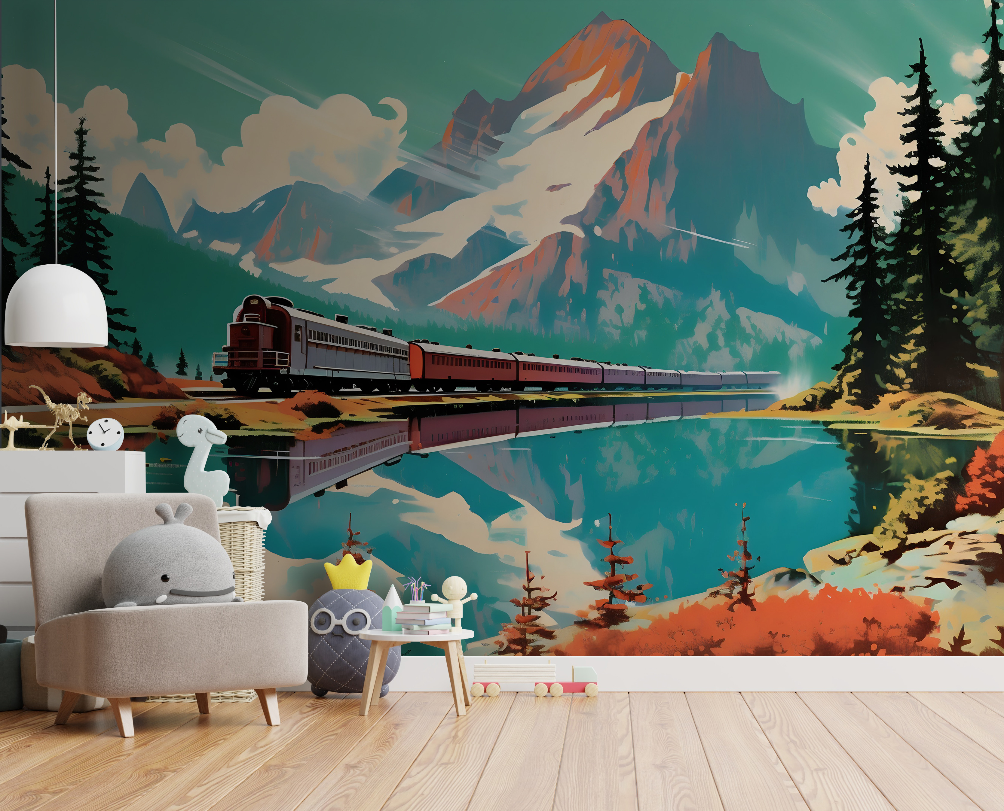 Képzelje el ezt: egy vonat zakatol, átvág egy fenséges hegyvonulaton, amely tökéletesen tükröződik egy nyugodt tóban. Igen, a “Fotótapéta Train passing by a mountain” ezt örökíti meg élénk színekben. Olyan, mint egy kalandjegy a faladra, amely elrepít téged olyan helyekre, ahol a természet dicsősége találkozik az utazás izgalmával. Ideális a gyerekszobába, a tinédzserek rejtekhelyére, vagy nagyjából bárhová, ahol jól jönne egy csipetnyi vándorlási vágy. Van benne valami békés és üdítő – szinte mintha hallanád a vonat füttyét, és éreznéd a friss hegyi levegőt. Tökéletes álmodozásra, vagy egy szoba hangulatos meneküléssé alakítására!