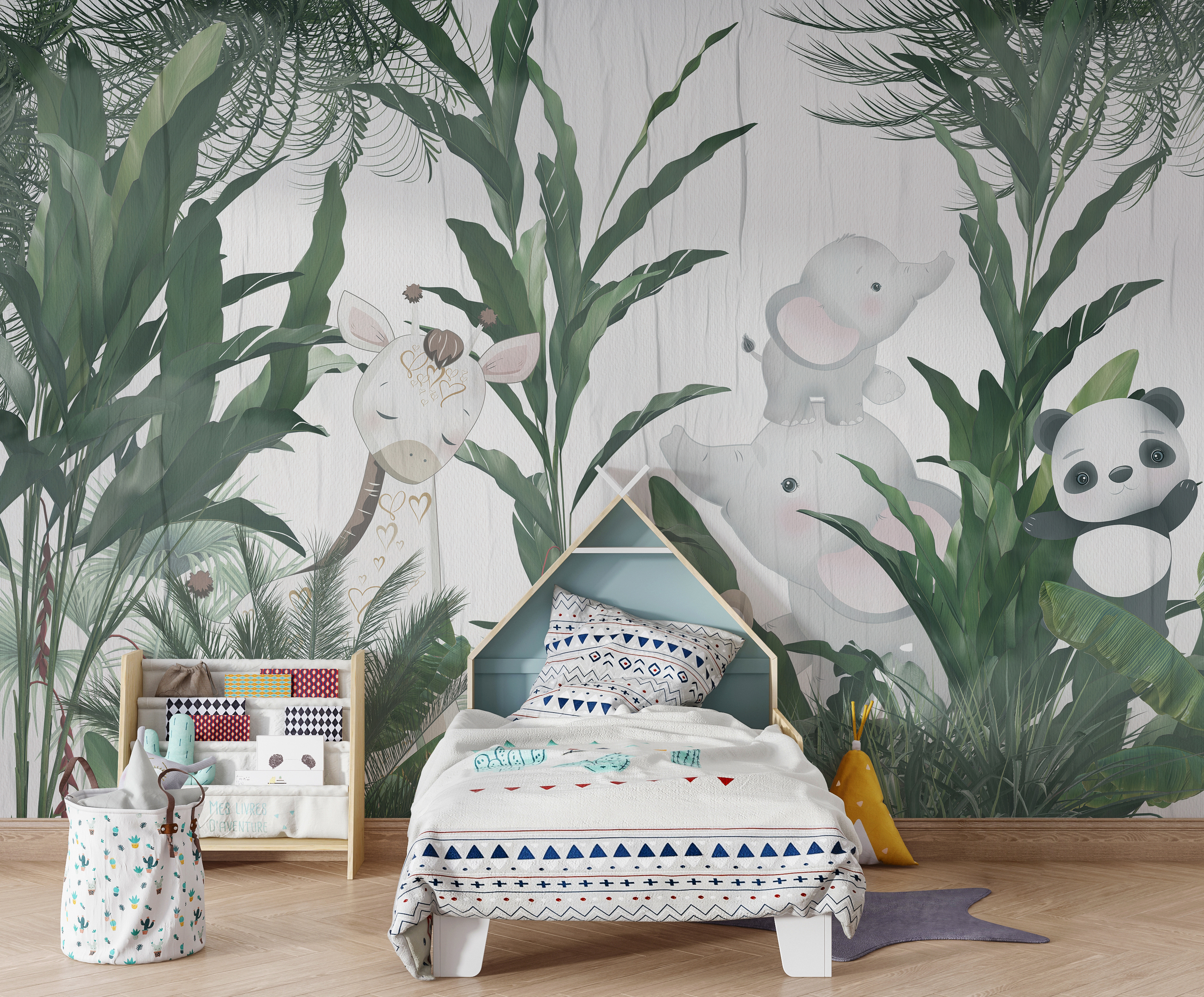 Ennek a falfestménynek a felszerelése olyan, mintha egy szeszélyes erdőt hívna meg az otthonába. A dzsungel hangulata magával ragad, és játékos bájával a gyerekeket és a felnőtteket egyaránt magával ragadja. Képzelje el az esti meséket ezzel a varázslatos háttérrel – egy dzsungel-expedíciót anélkül, hogy elhagyná a szobát! Az élénk zöld árnyalatok és az aranyos, békés állatok barátságos keveréke, amely bármilyen helyiséget otthonossá és kalandossá varázsol. A gyerekek végtelen meséket álmodhatnak új erdei barátaikkal. Egyszerűen varázslatos.