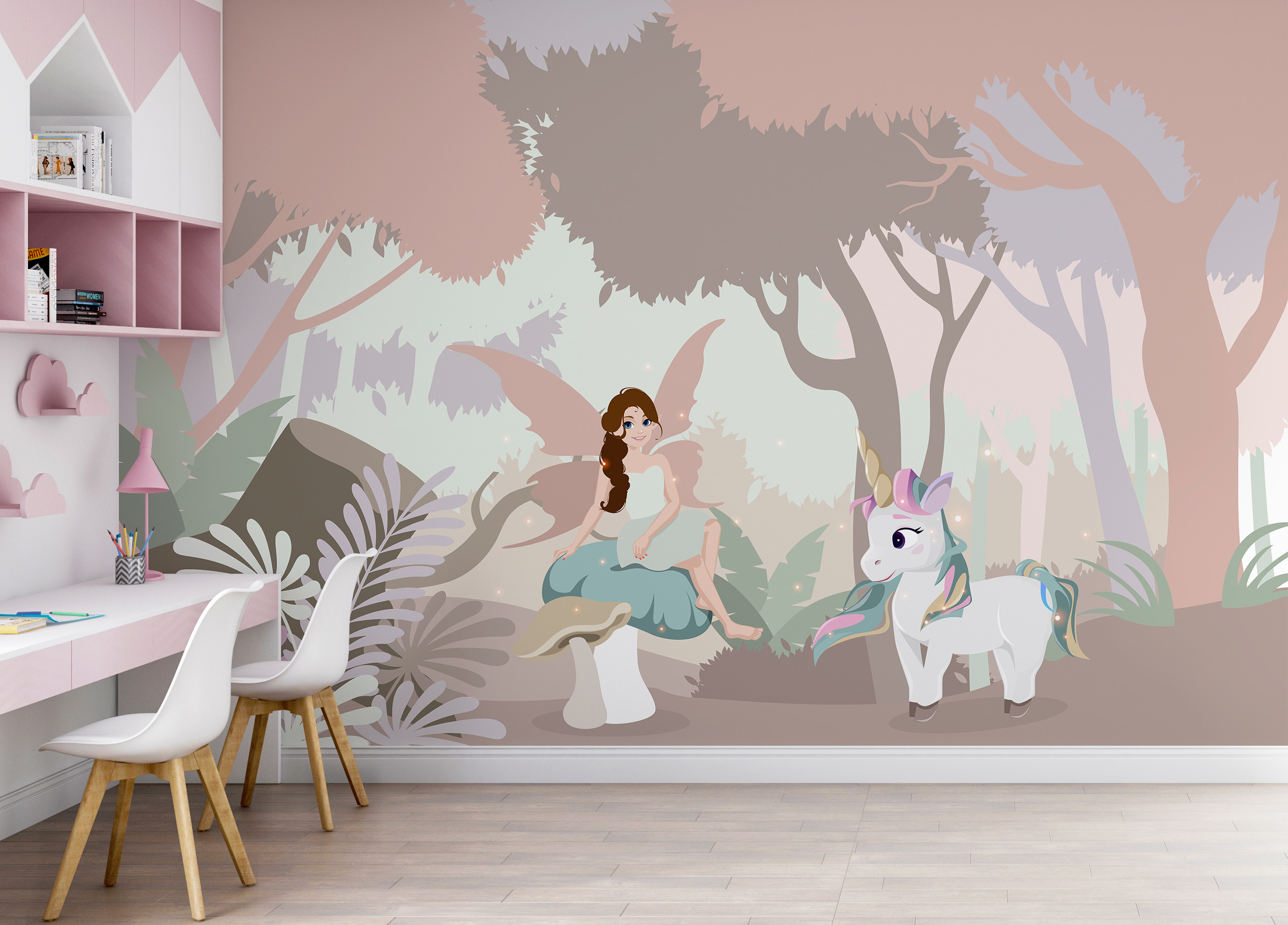 Hát nem egy teljes álomkép ez a freskó? Képzelj el egy gyönyörű egyszarvút, amint egy varázslatos erdőben lóg egy szeszélyes tündérrel – ez egyenesen egy mesekönyvből való! Ez a falfestmény tökéletesen beindítja a kisgyermek képzeletét, és egy kis varázslatot és kalandot varázsol a szobájába. Aranyos pasztell árnyalatokat és bájos részleteket találsz, amelyek az egész jelenetet olyan elevenné teszik! Gondolj arra az örömre, amit gyermeked arcán láthatsz, amikor minden nap erre a varázslatos világra ébred. Mintha minden reggel egy tündérmesébe lépne be. Ki tudja, talán még az esti mesék is varázslatosabbá válnak ezzel a játékos háttérrel. Remek választás, hogy bármelyik szobát egyedien bájossá és különlegesen hangulatossá varázsolja!