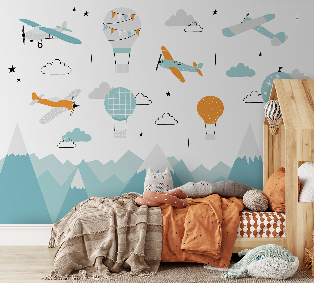Varázsolja át otthonát egy mesés égbolttá ezzel a gyönyörű faliképpel, amelyen magasra szárnyaló repülőgépek és vidám hőlégballonok láthatók. Képzelje el, milyen lenne belépni egy szobába, ahol az élénk színek és a játékos dizájn örömöt kelt és beindítja a fantáziát. Olyan, mintha minden nap egy kaland lenne – ki ne szeretne egy kicsit könnyebbnek érezni magát? A bájos illusztrációk nosztalgikus hangulatot kölcsönöznek, szinte olyanok, mint egy gyermekkori álom. Tökéletes választás gyerekszobába, játszószobába vagy akár a saját kényelmes sarokba is, és örömteli emlékeztető arra, hogy bármennyi idős is legyünk, mindig álmodozzunk. Akassza fel, dőljön hátra, és hagyja, hogy a kalandok kibontakozzanak!