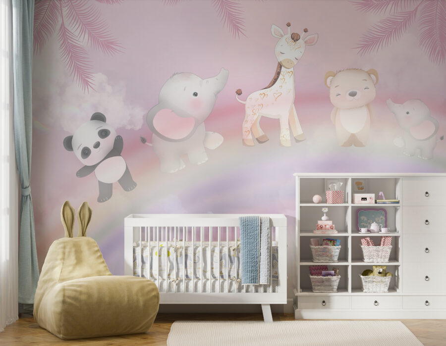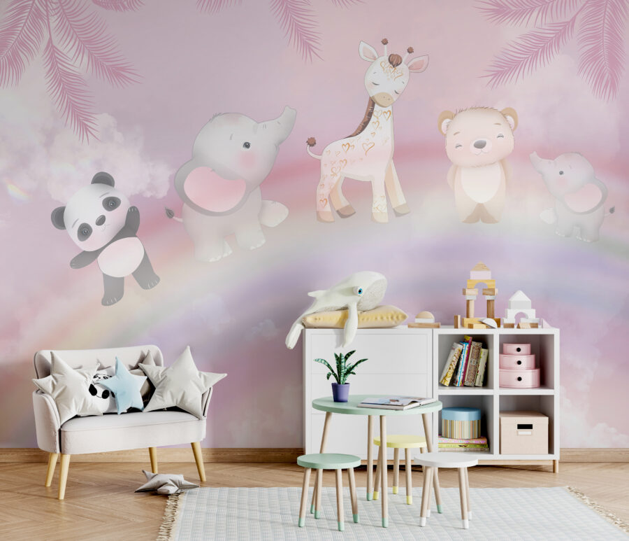 Képzelje el, hogy kisgyermeke szobájába lépve ez a bájos csapat fogadja: egy imádnivaló panda, egy szelíd zsiráf, egy hangulatos medve és játékos barátaik. Ez a “Fali falfestmény rajzolt panda” több mint egyszerű dekoráció; olyan, mintha egy szeszélyes álomképbe lépnél. A lágy rózsaszín égbolt és a pelyhes felhők megnyugtató hátteret teremtenek, míg a pasztellszínű szivárvány mindent összeköt – olyan, mint egy ölelés, nem igaz? A gyerekszobákba ideális falfestmény egy kis örömet és csodát szór, és minden nap fantáziadús kalandokra sarkall. Tökéletes a gyermek kreativitásának ápolásához és a helyiség varázslatos elvonulási hellyé alakításához. Elég elragadó, nem igaz?