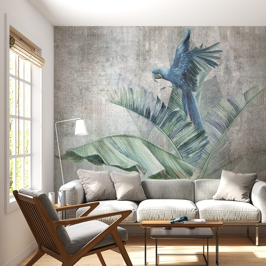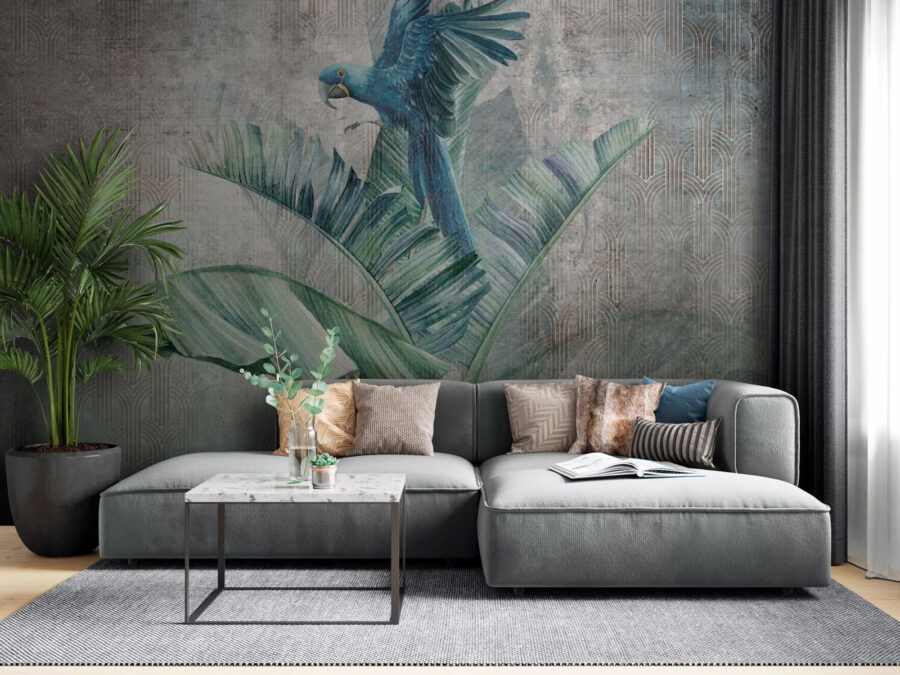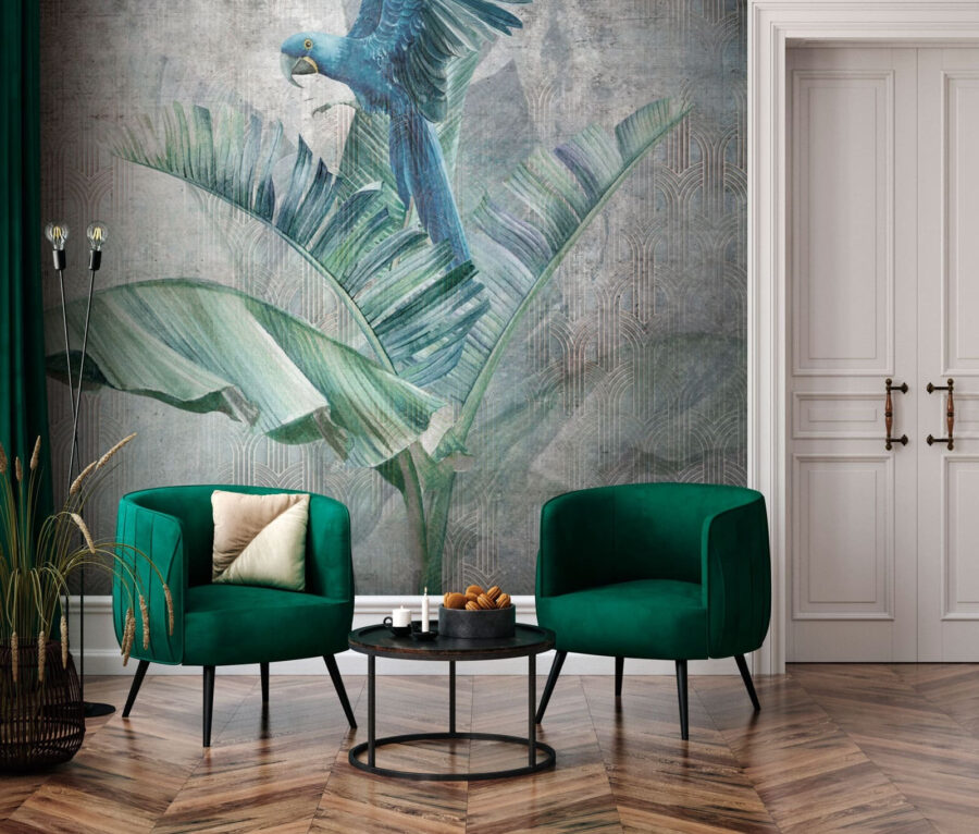 Képzelje el, hogy belép a nappalijába, és egy lenyűgöző kék papagáj fogadja a buja, lombos ágakon ülve. Ez a falfestmény több mint dekoráció – ez egy trópusi menekülés. A papagáj élénk kék színe a nyugtató zöld háttér előtt felbukkan, így a helyiséget esőerdei oázisnak érzi. Tökéletes mindenkinek, aki szereti a madarakat, vagy csak egy kicsit több természetre vágyik az életében. Képzelje el ezt az étkezőjében, friss hangulatot kölcsönözve a reggeli kávéjának vagy a vacsoravendégeknek, bókolva egyedi stílusának. Ráadásul a jelenetet keretező pálmalevelekkel épp a megfelelő eleganciát sugározza. Miért érné be egyszerű falakkal, amikor olyan műalkotásod lehet, amely minden nap egy trópusi paradicsomba repít?