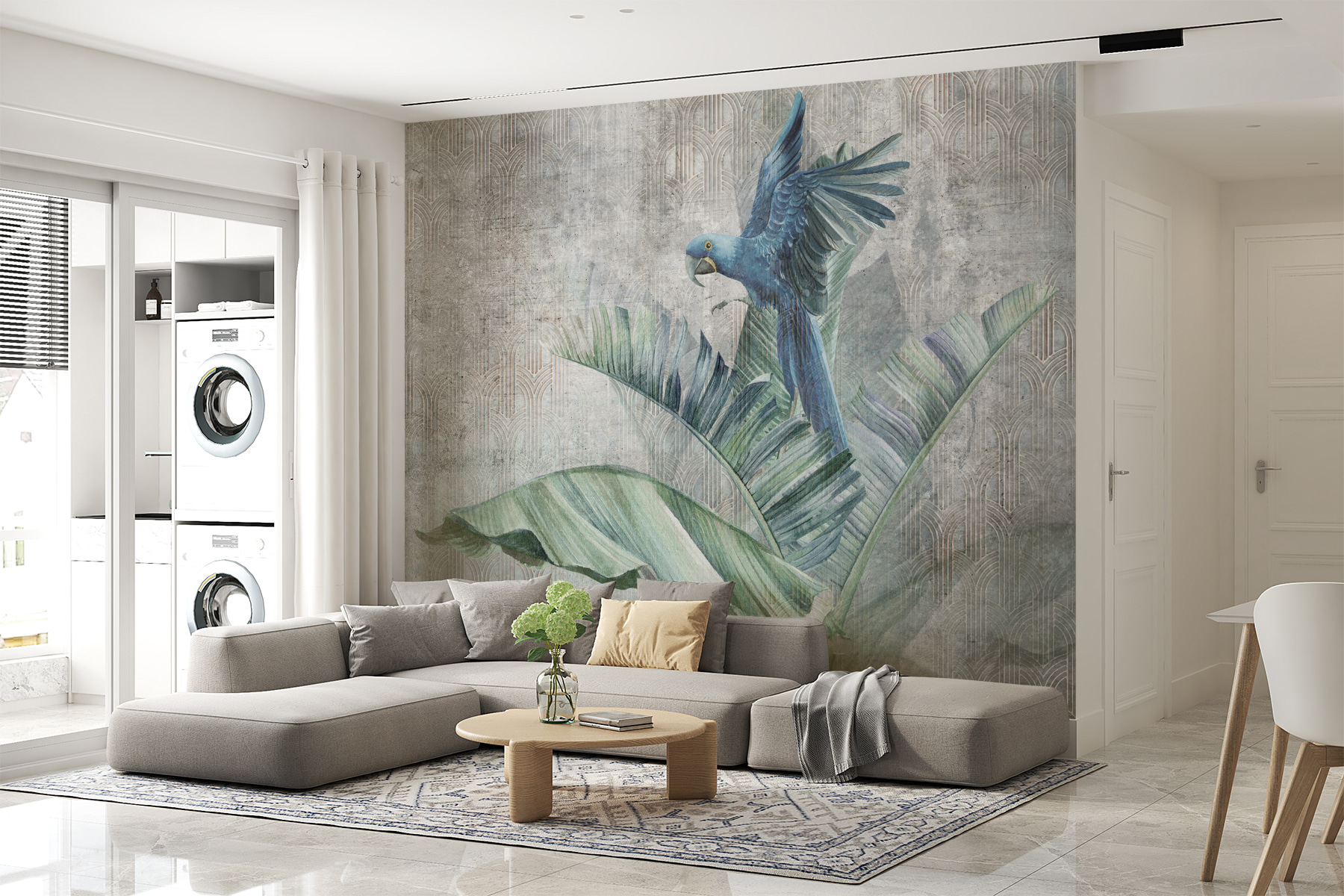 Képzelje el, hogy belép a nappalijába, és egy lenyűgöző kék papagáj fogadja a buja, lombos ágakon ülve. Ez a falfestmény több mint dekoráció – ez egy trópusi menekülés. A papagáj élénk kék színe a nyugtató zöld háttér előtt felbukkan, így a helyiséget esőerdei oázisnak érzi. Tökéletes mindenkinek, aki szereti a madarakat, vagy csak egy kicsit több természetre vágyik az életében. Képzelje el ezt az étkezőjében, friss hangulatot kölcsönözve a reggeli kávéjának vagy a vacsoravendégeknek, bókolva egyedi stílusának. Ráadásul a jelenetet keretező pálmalevelekkel épp a megfelelő eleganciát sugározza. Miért érné be egyszerű falakkal, amikor olyan műalkotásod lehet, amely minden nap egy trópusi paradicsomba repít?