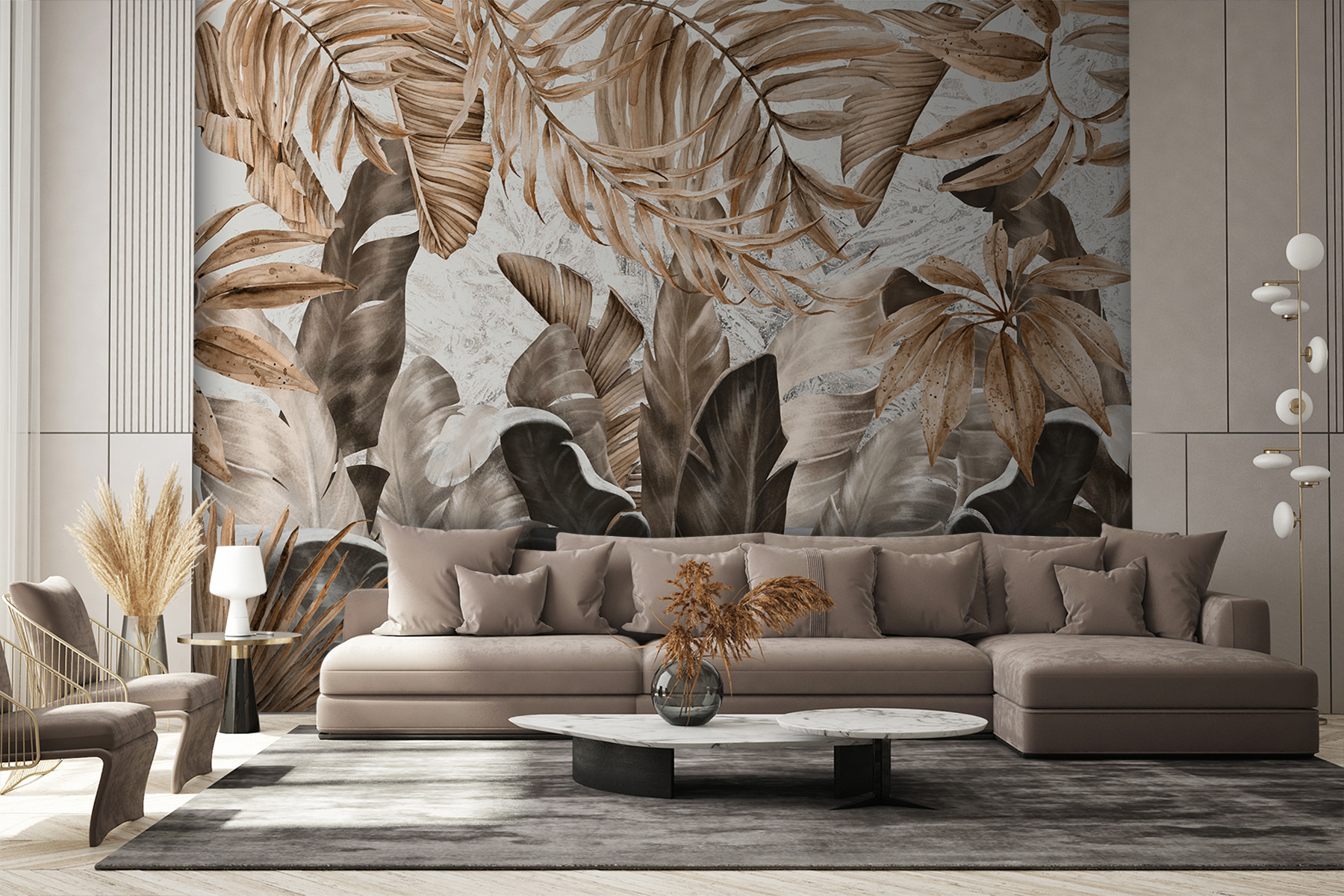 Képzelje el, hogy a nappalijába lépve úgy érzi, mintha egy nyugodt trópusi paradicsomba került volna. Ez a “Trópusi levelek földes tónusokban” falfestmény pontosan ezt teszi. Ezek a lenyűgöző, túlméretezett levelek gazdag, földes árnyalatokkal, amelyek a természet egy csipetnyi hangulatát hozzák be otthonodba. Ez nem csak egy divatos tapéta – ez egy statement darab, szinte olyan, mintha egy hatalmas, gyönyörű, modern művészeti alkotás lenne a falon.