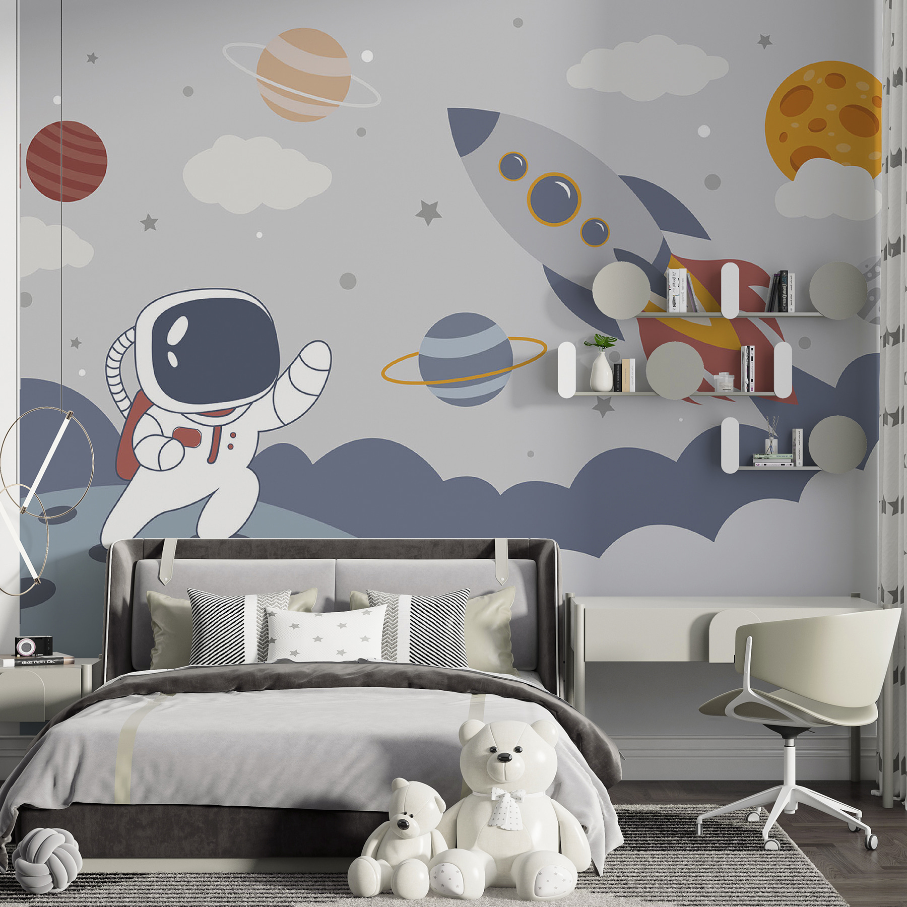 A gyermek terének kozmikus kalanddá alakítása olyan egyszerű, mint ez a bájos űrhajóst és vibráló bolygókat ábrázoló falfestmény. Képzeld el, ahogy a kisgyermek ezt a világon kívüli jelenetet bámulja, és űrutazásokról és intergalaktikus szökésekről álmodik. A játékos dizájn egy adag fantáziát hoz, amely tökéletes a világegyetem iránti kíváncsiság felkeltéséhez. A színes gyűrűk és a szeszélyes felhők álmodozásra és mesebeli utazásra hívnak, így a lefekvés ideje egy kicsit kevésbé lesz hétköznapi. Ez nem csak egy dekoráció; ez egy kapu a csodák és örömök galaxisába!