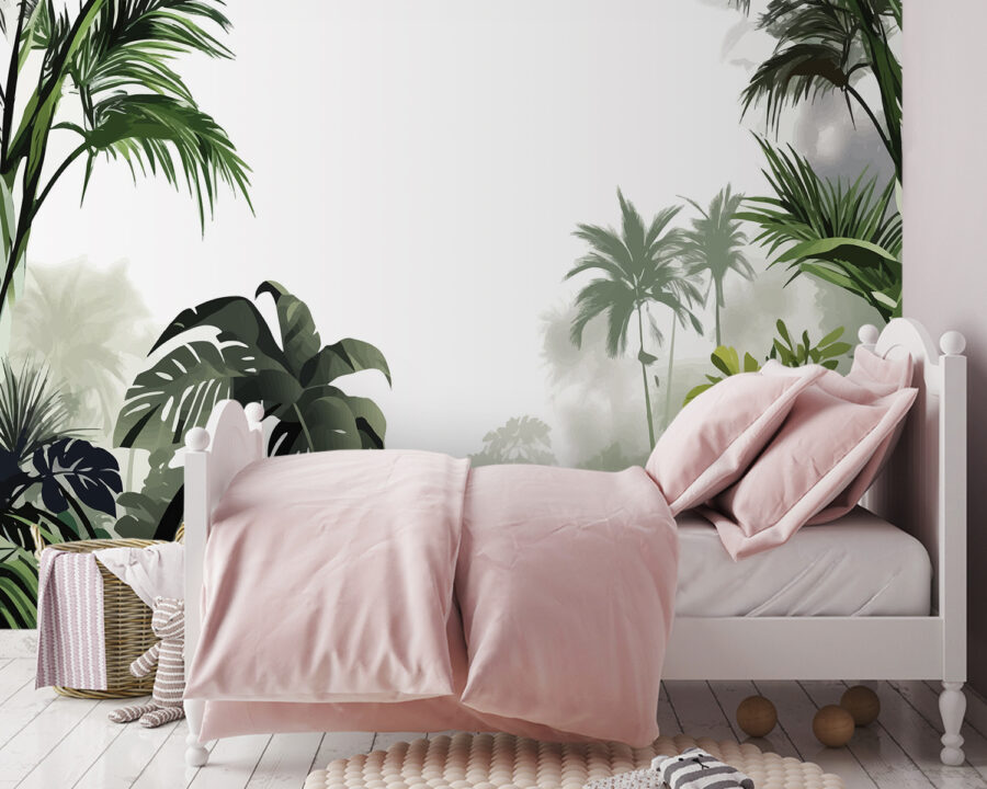 Alakítson át bármilyen szobát buja meneküléssé ezzel az álomszerű ködös erdőben lévő pálmafákat ábrázoló, magával ragadó freskóval. Képzelje el, hogy a zöldellő lágy ölelésre ébred, mintha egy nyugodt oázisba lépett volna egyenesen az álmaiból. Tökéletes gyerekszobákba vagy bárkihez, aki a természet egy szeletére vágyik, ez a falfestmény olyan, mint egy szelíd meghívás a felfedezésre. Nem csak dekoráció; beindítja a képzeletet, és még a legszürkébb napot is egy kicsit derűsebbé teszi. Vigyen egy kis kalandot a falakra, és nézze, ahogy a varázslat kibontakozik. Ki ne szeretne egy kis dzsungelcsodát az otthonába?