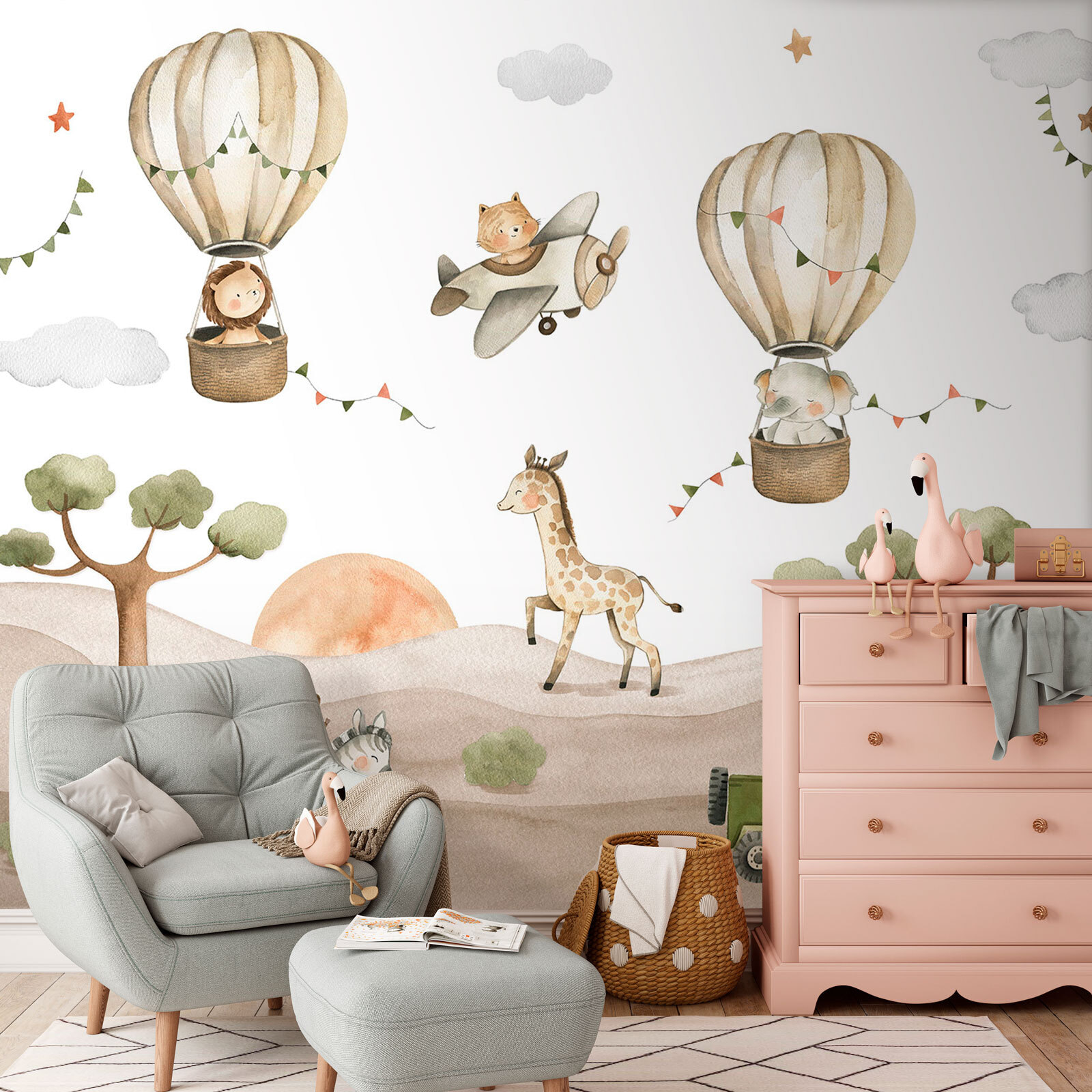 Rendben, ezt nézzétek – egy falfestmény, melynek címe “Majom lovagol egy zebrán”! Tökéletes a kis felfedező szobájába, akár az állatokért rajong, akár csak a vad fantáziájáért. Képzeld el: egy majom vidáman lovagol egy zebrán egy szeszélyes tájképen, amely úgy néz ki, mintha egyenesen egy esti meséből származna. Hőlégballonok, egy játékos zsiráf és egy barátságos dzsip teszik teljessé ezt az imádnivaló jelenetet. Képzelje el, hogy gyermeke minden reggel erre ébred, és úgy érzi, mintha egy végtelen kalandban lenne része. Ez nem csak falikép, hanem szikra a meséléshez és az álmodozáshoz. Mennyire király ez? Ez a falfestmény bármelyik gyerekszobában sikert arat, szórakoztatóvá és nagyon egyedivé teszi a helyiséget. Ki gondolta volna, hogy a dekorálás ilyen élvezetes lehet?