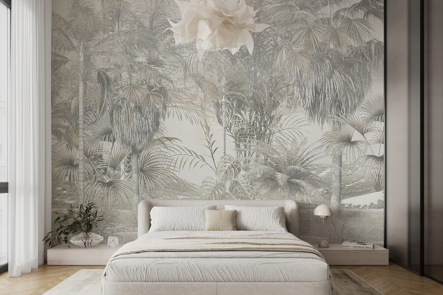 Álmodtál már arról, hogy egy álomszép, trópusi oázisba lépsz? A “Falfestmények – Trópusi fák ködös tájban” lehet, hogy az Ön számára tökéletes választás. Képzelje el, hogy erre ébred – dús zöldellő, kecsesen árnyékos levelek, mindez puha, ködös fátyolba burkolózva. Olyan, mint egy nyugodt dzsungelutazás, anélkül, hogy elhagynád a meghitt teret.