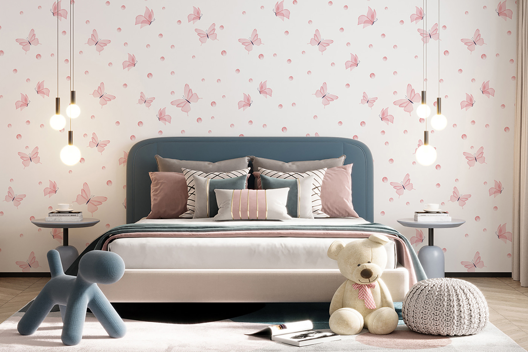 Megvan ez a bájos egyensúly – elegáns, mégis szórakoztató. A lágy pasztellrózsaszín megnyugtató érzés. Ráadásul a fekete ékezetek épp elég kontrasztot adnak, hogy a dolgok érdekesek maradjanak. Az újszülöttektől a tizenévesekig mindenki kedvence, sőt, még az álmodozó dekorációért rajongó felnőtteké is. Szóval, ha a falaidat kicsit unalmasnak érzed, adjunk nekik szárnyakat! 🦋