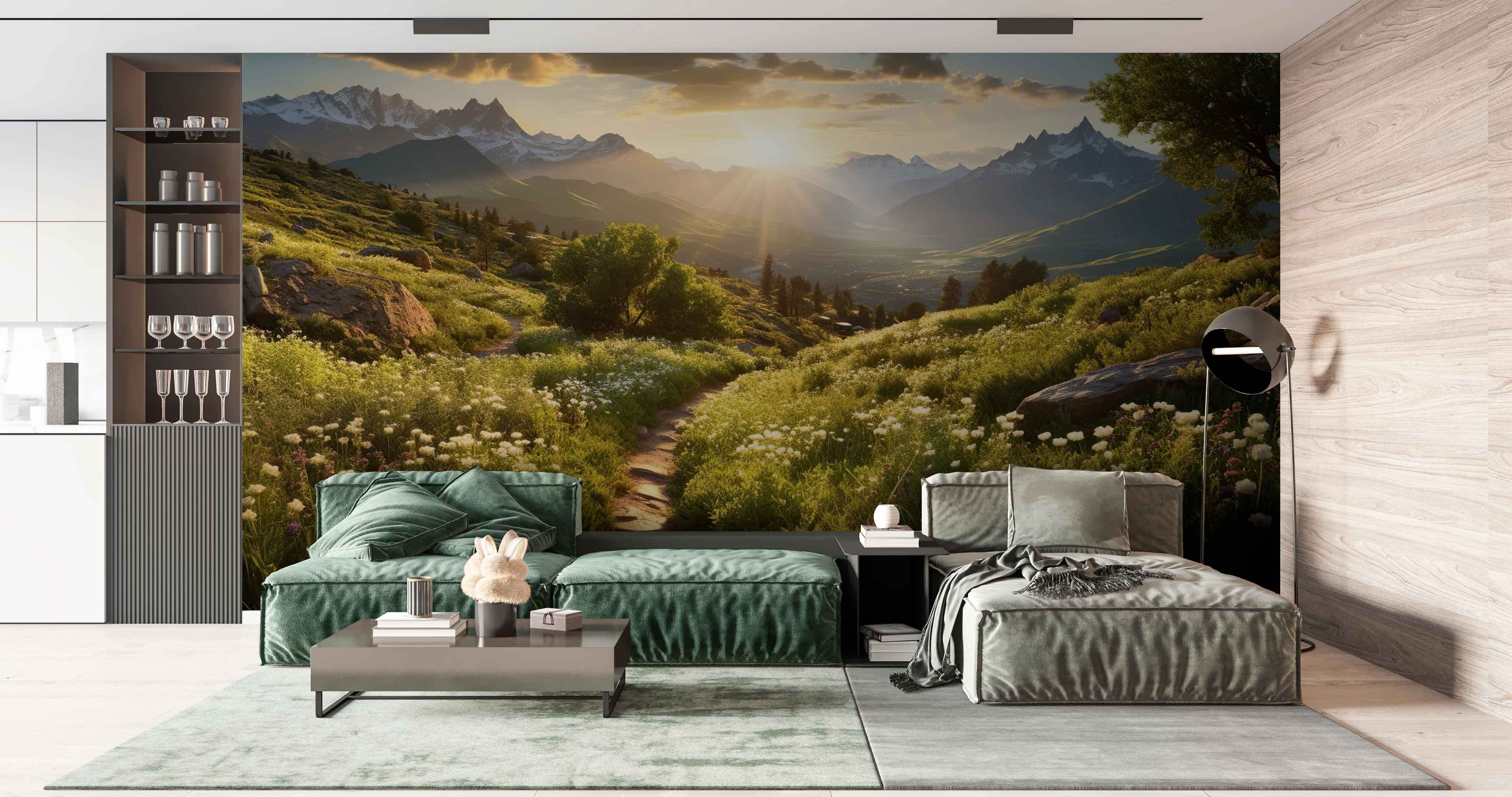 Rendben, képzeld el a következőt: a nappalidban vagy, de hirtelen nem vagy ott. Ez a falfestmény? Ezt csinálja. Olyan, mintha egy békés menedékbe lépnél, amelyet buja fák és a távolban fenséges hegyek vesznek körül. Szinte érzed a friss hegyi levegőt, és hallod a levelek zizegését.