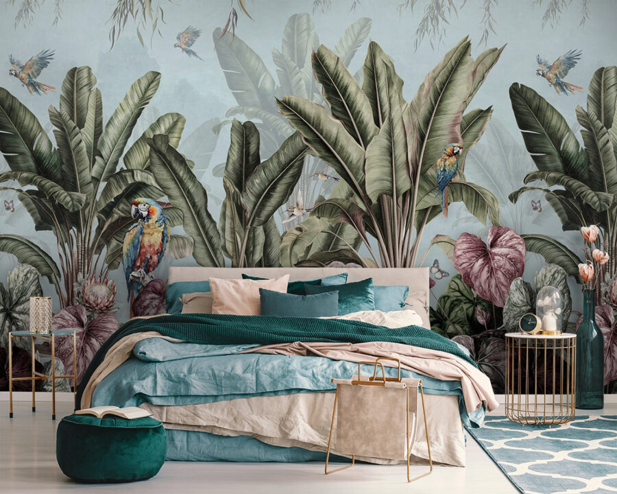 Varázsolja otthonát élénk trópusi menedékké ezzel a lenyűgöző faliképpel, amelyen buja növények és színes madarak láthatók. Képzelje el, hogy minden nap egy napfényes dzsungelhez hasonló szobában ébred – ez aztán a hangulatjavító! A gazdag zöldek és a játékos színfoltok nyugalmat és kreativitást árasztanak, tökéletesek egy olvasósarokhoz vagy egy élénk nappalihoz. És ne felejtsük el a kedves pillangókat sem, amelyek repkednek körülöttünk, és egy kis varázslatot adnak a helyiségnek. Olyan, mintha nyaraláson lennénk, anélkül, hogy elhagynánk otthonunkat. Ki ne szeretne ilyen szépség körül kávézni? Ez a tapéta tökéletes választás azok számára, akik a természetet szeretnék behozni otthonukba.