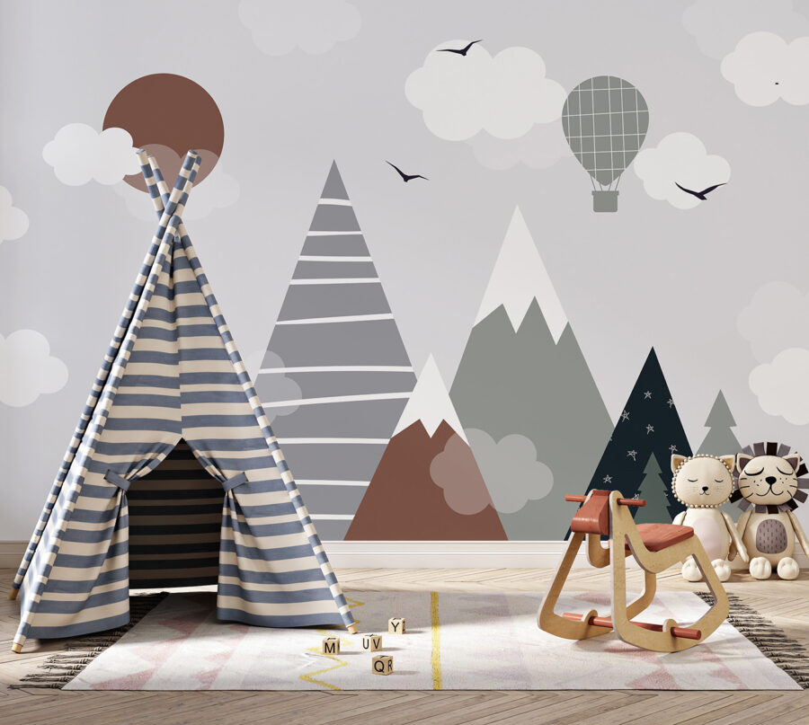 Legyen szó mesemondásról vagy játékról, a gyerekek úgy fogják érezni, mintha egy álomszép erdőbe lépnének. A hegycsúcsok, fenyők és felhőpamacsok művészi keveréke beindítja a kreativitásukat, és távoli tájakra repíti őket. Kiválóan alkalmas csecsemőknek, kisgyermekeknek és tovább. Ráadásul ki ne szeretné, ha egy hőlégballon lebegne a falán? Ideális gyerekszobákba vagy bármely olyan helyiségbe, ahol szükség van a csodák extra csipetnyi varázslatára.