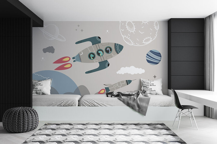 Képzeld el: dinoszauruszok száguldoznak az űrben rakétahajókon! Ez tiszta varázslat a falon! Tökéletes bármelyik gyerekszobába, ez a falfestmény végtelen kalandokat és vad fantáziát ébreszt. Gondolj esti mesékre T-Rex űrhajósokról és dínóholdas leszállásokról. Látni, ahogy a kicsik szeme felcsillan, valahányszor meglátják – ez felbecsülhetetlen. A színek lágyak és magával ragadóak, hangulatos, mégis vidám hangulatot teremtve. Az őskori báj és az űrkorszak hűvössége szeszélyes keveréke. Ideális a kis álmodozók és a jövő felfedezői számára. Rakétahajtású lefekvés? Igen, kérem!