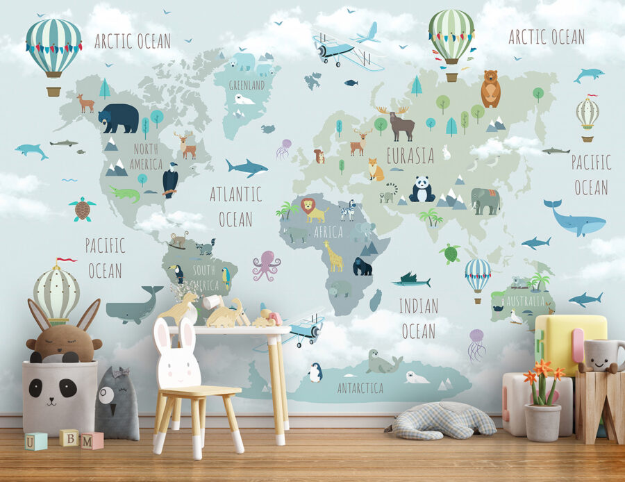 Gondoltál már arra, hogy világkörüli útra viszed a kisgyermekedet anélkül, hogy elhagynád a szobáját? Ez a “Hőlégballon zászlókkal” falfestmény lehetővé teszi ezt – és még szórakoztatóbbá is teszi! Ez nem csak egy térkép; ez egy kaland. Képzeld el, ahogy egy színes hőlégballonnal a felhők között sodródsz, aranyos állatokat pillantasz meg, és felfedezed a kontinenseket. Tökéletes a kíváncsi elméknek és az álmodozóknak.