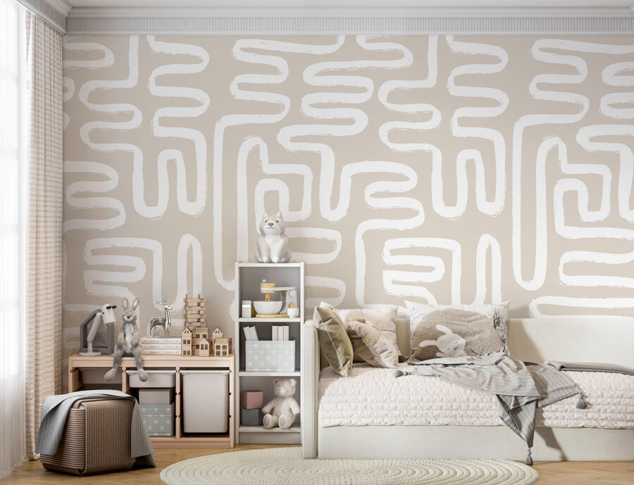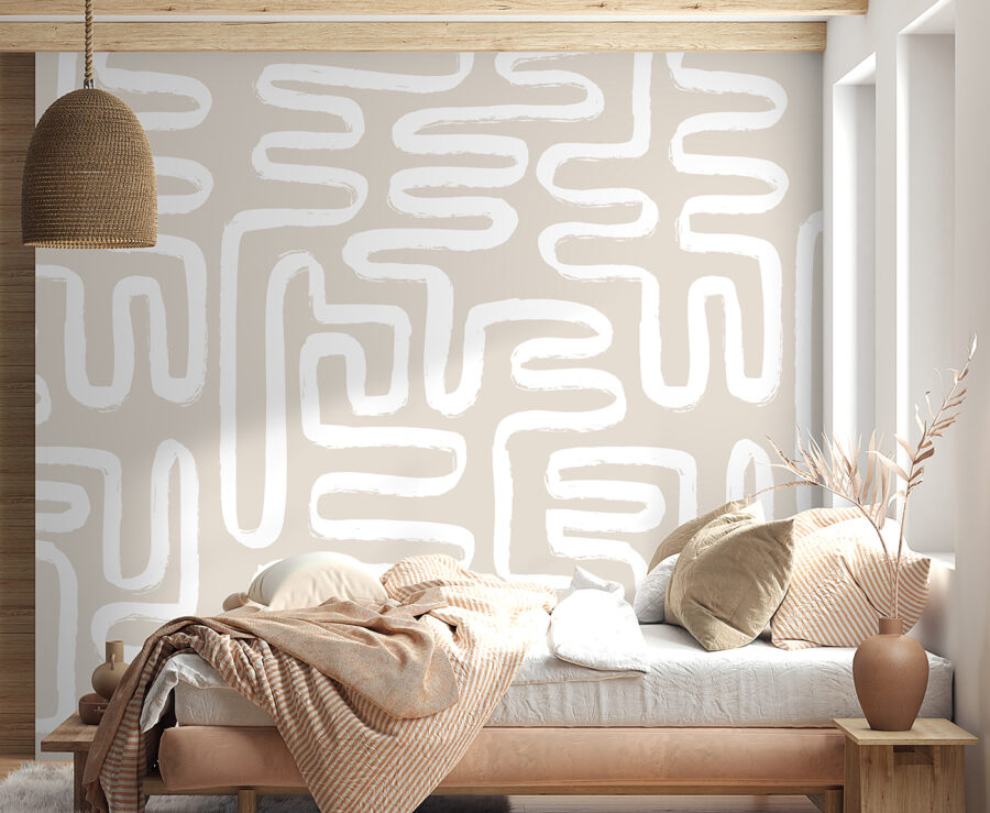 Lépjen be a játékos elegancia világába ezzel a falfestménnyel, ahol absztrakt fehér vonalak táncolnak a lágy bézs háttéren. Olyan, mintha egy kortárs művészeti galéria lenne a nappalidban – a belépőjegy ára nélkül! Képzelje el, ahogy a reggeli kávéját kortyolgatva bámulja ezeket a szeszélyes formákat, amelyek valahogy egyszerre képesek inspirációt kiváltani és megnyugtatni az elmét. A vendégeket magával ragadja, és a beszélgetések könnyedén folynak majd. Minden pillantás egy új részletet tár fel, mint egy kis kincskeresés. Tökéletes választás nappaliba, irodába vagy bármely olyan helyiségbe, ahol extra adag kreativitásra van szükség!