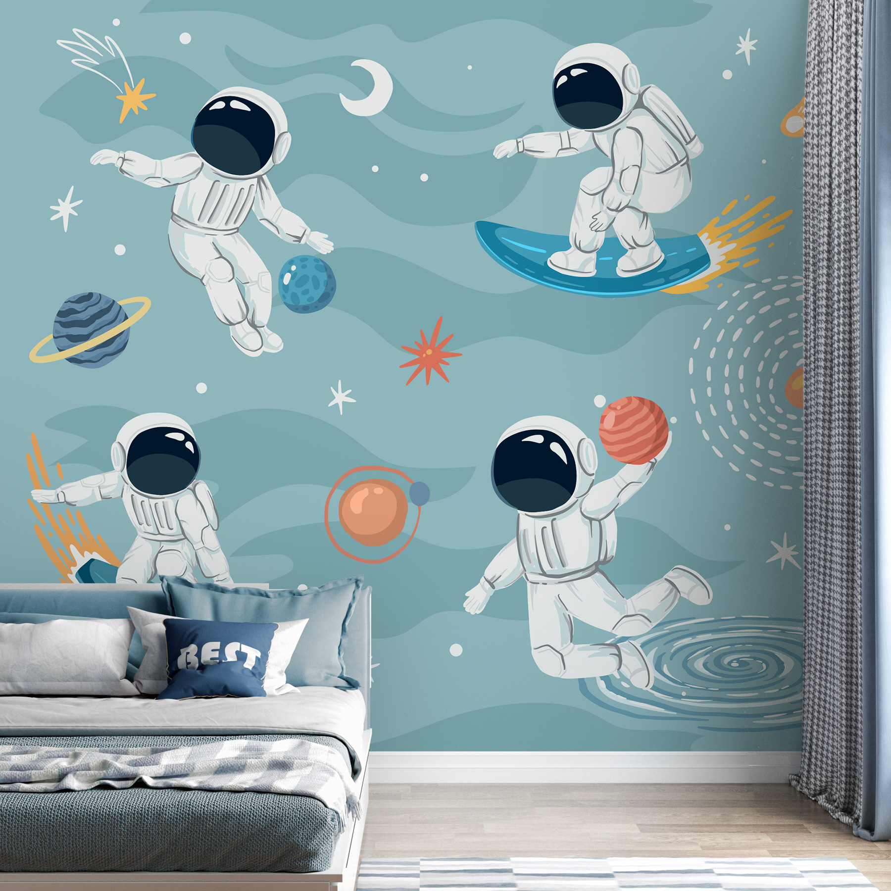 Képzeld el, hogy ezzel a fantasztikus falfestménnyel kozmikus játszótérré varázsolod a gyerekszobádat. A “Cartoon of an Astronaut on a Surfboard” egy vad űrutazásra visz – olyan, mintha a galaxis hullámait közvetlenül a faladról csapnád. Tökéletes arra, hogy beindítsa a gyermek képzeletét, vagy hogy furcsa hangulatot kölcsönözzön egy játszószobának. Minden elem megtalálható rajta – bolygók, csillagok, sőt még egy kis üstökös-akció is. El tudod képzelni az esti meséket? A Tejúton átívelő kalandokról álmodozva, hullócsillagokon lovagolva. Élénk, vidám és egy kicsit túlzó – pont olyan, amilyennek a gyermekkornak lennie kell. Bármilyen térben kozmikus érzést kelt!