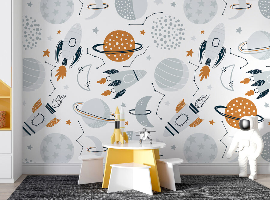 Indulj el egy kalandba ezzel a “Fehér kör csillagokkal” falfestménnyel, amely tökéletesen beindítja a fiatal űrrajongók fantáziáját. A játékos rakéták, bolygók és csillagképek egy szeszélyes galaxist hoznak létre a gyermek falán. Ez nem csak dekoráció – ez egy mindennapi menekülés az űrbe!