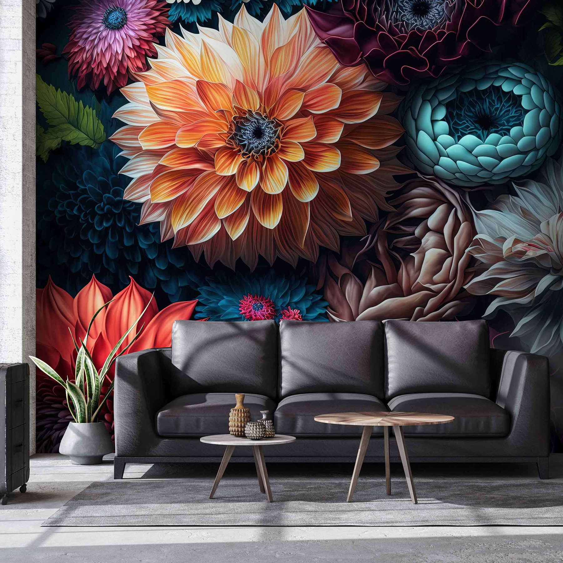 Az “Elegánsan virágzó színes virágok” falfestmény segítségével egy unalmas falat lélegzetelállító kertté varázsolhatsz. Képzeld el, hogy egy vibráló virágos csodavilágba lépsz közvetlenül a nappalidban. Ezek a színekben pompázó, buja virágok még a legborongósabb napokat is tavaszias érzéssel tölthetik el. Olyan, mintha a természet egy darabját akasztanád a beltérbe – öntözés nélkül!