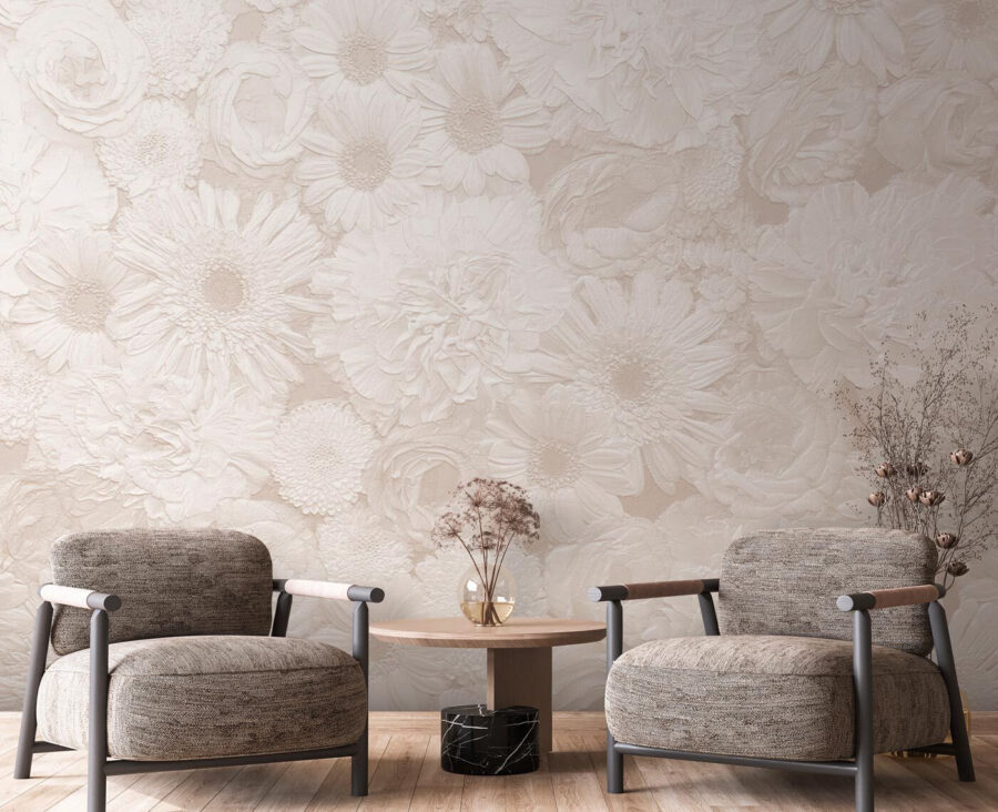 Szeretett volna egy kis eleganciát csavarral a falaira varázsolni? Ez a “Fehér virágmintás” falfestmény lehet, hogy pont megfelelő lesz. Finom, szinte suttogó textúrája magával ragadja az embert. Képzelje el, hogy minden reggel egy virágzó kertre ébred, közvetlenül a nappalijában vagy a hálószobájában. A lágy, fehér tónusok egy hangulatos, nyugodt tér érzetét keltik – tökéletes a hosszú nap utáni pihenéshez.